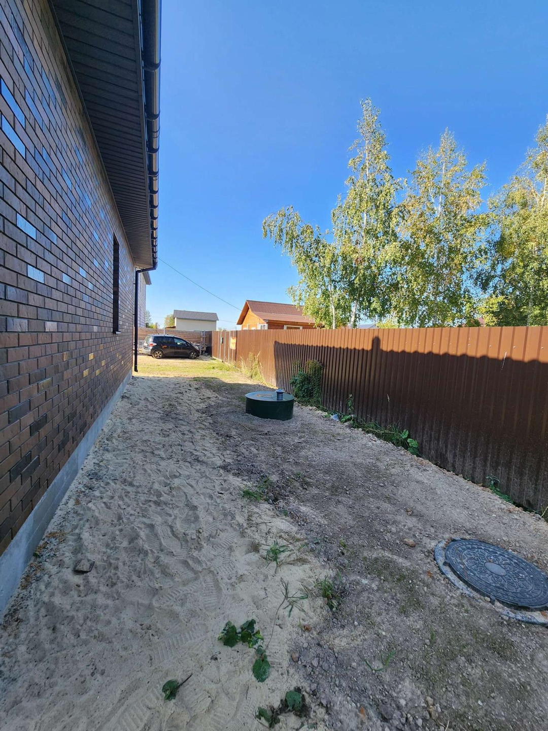 Участок 5 соток находится в 100 метрах от асфальта и остановки общественного транспорта, к участку 2 заезда. Подъезд к дому чистят городские службы. Участок с 2ух сторон огорожен забором.  Соседи все построились, живут круглогодично.
