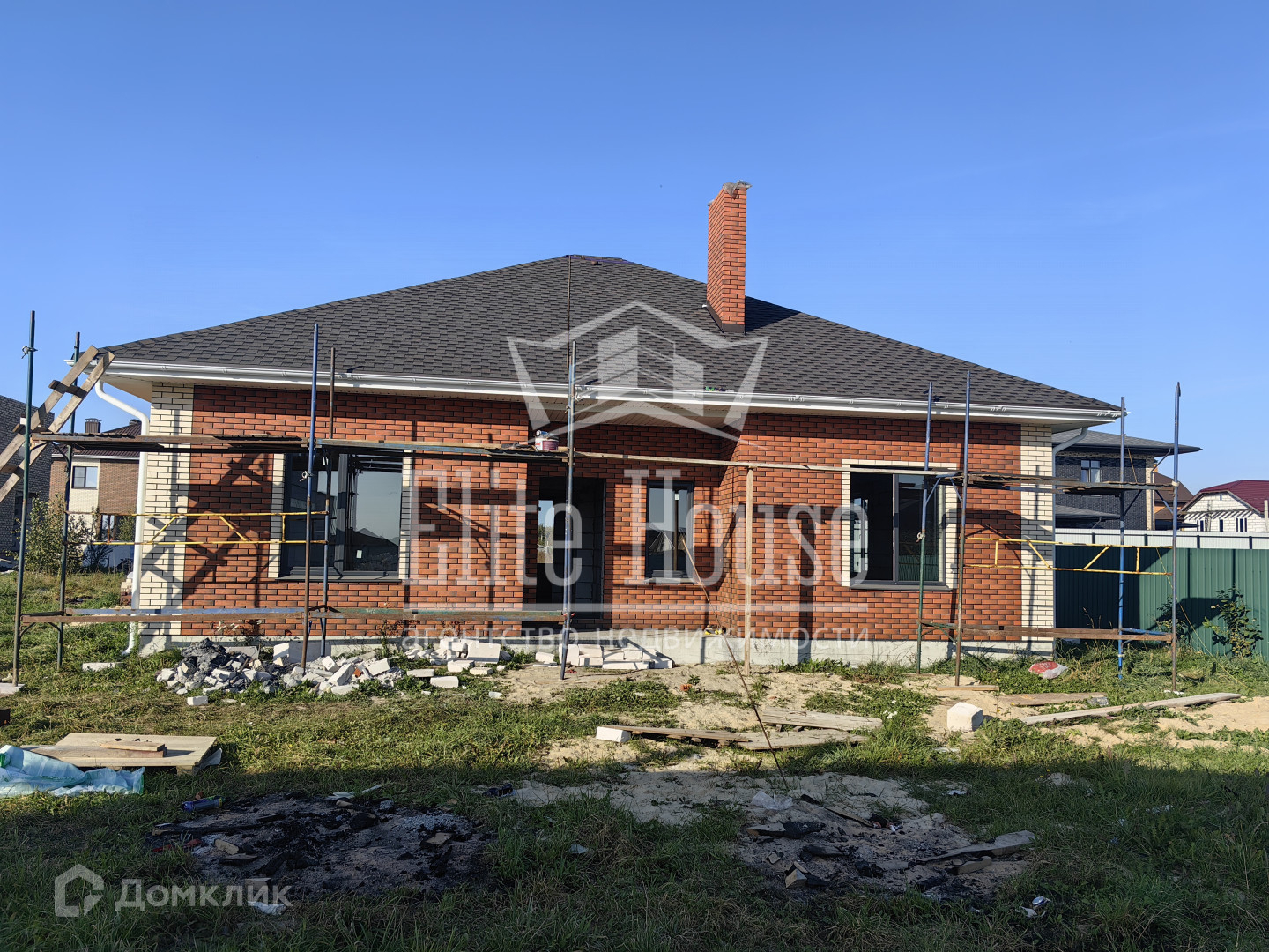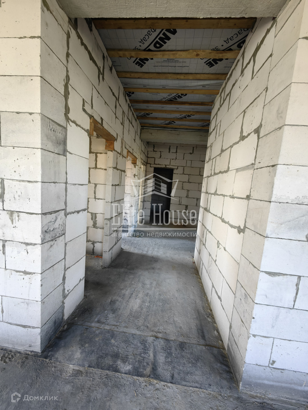 Фундамент плита, кровля мягкая, стены газоблок 300мм и облицован кирпичом.