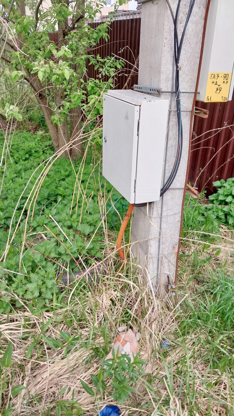 Подъезд к участку круглогодичный, газ идет по границе. Электрический столб с счетчиком.