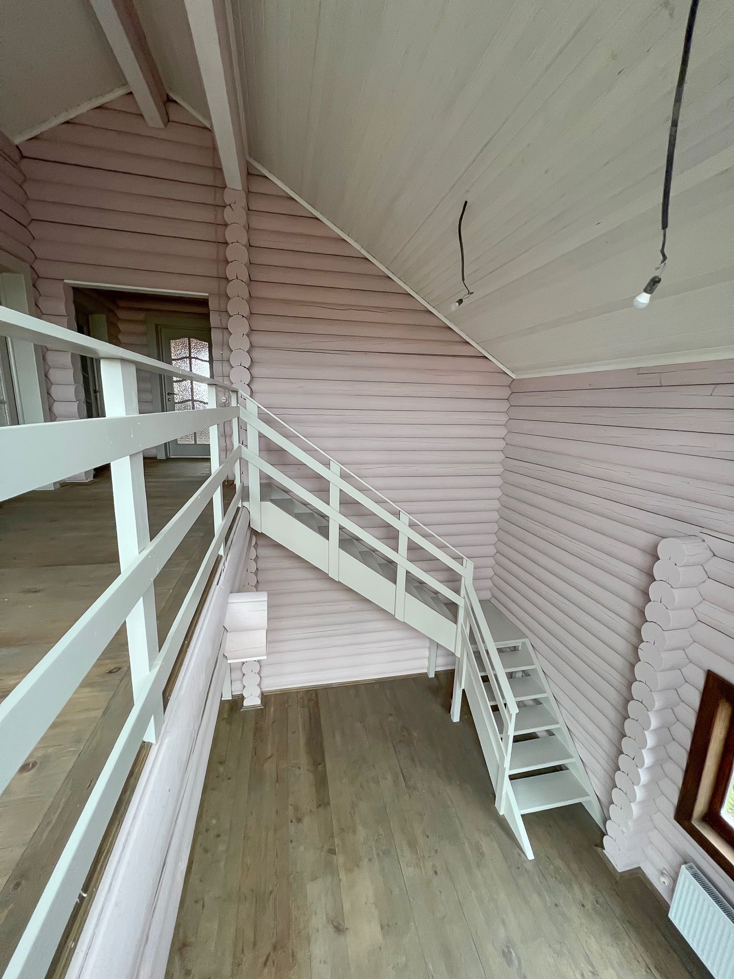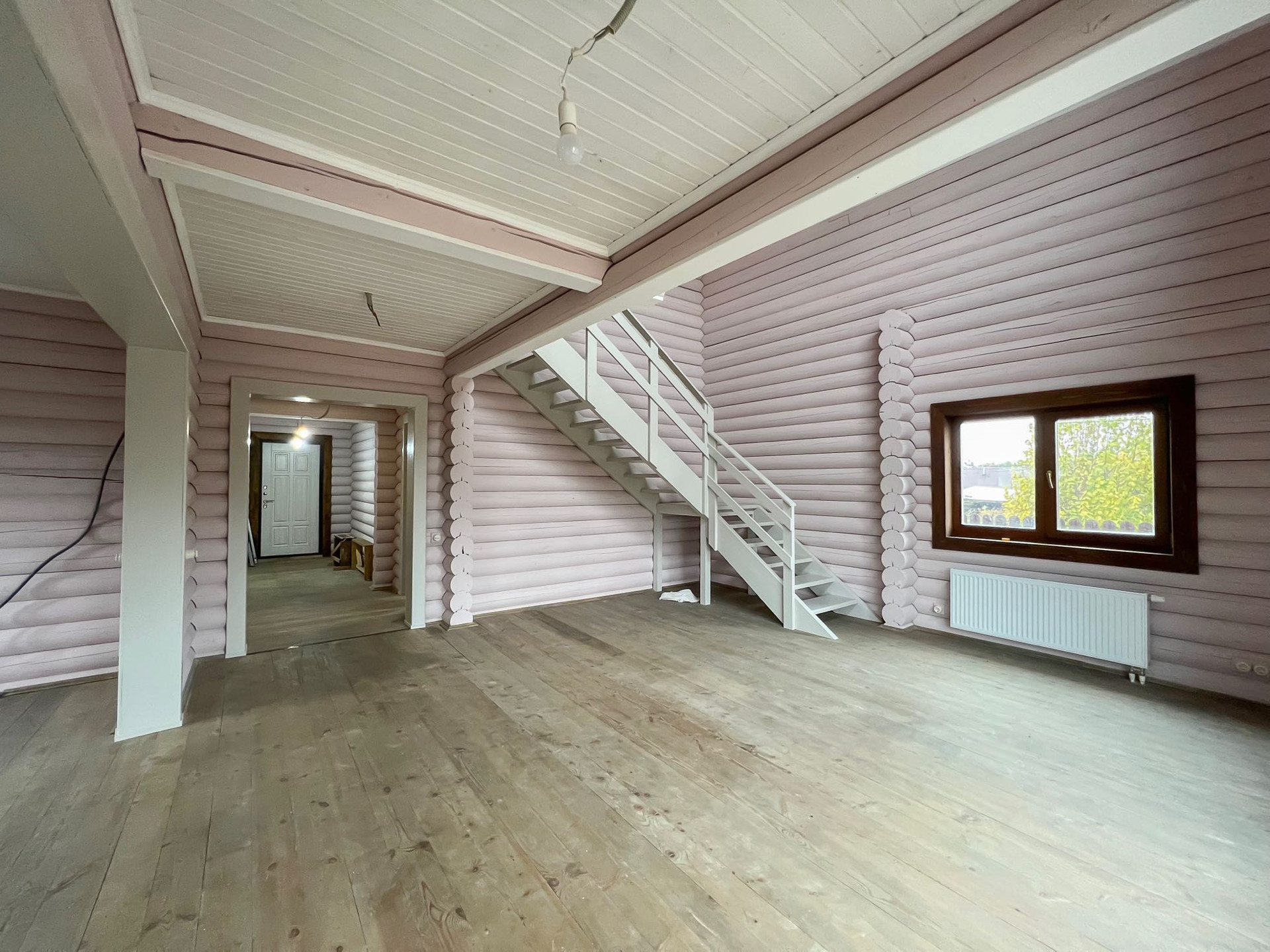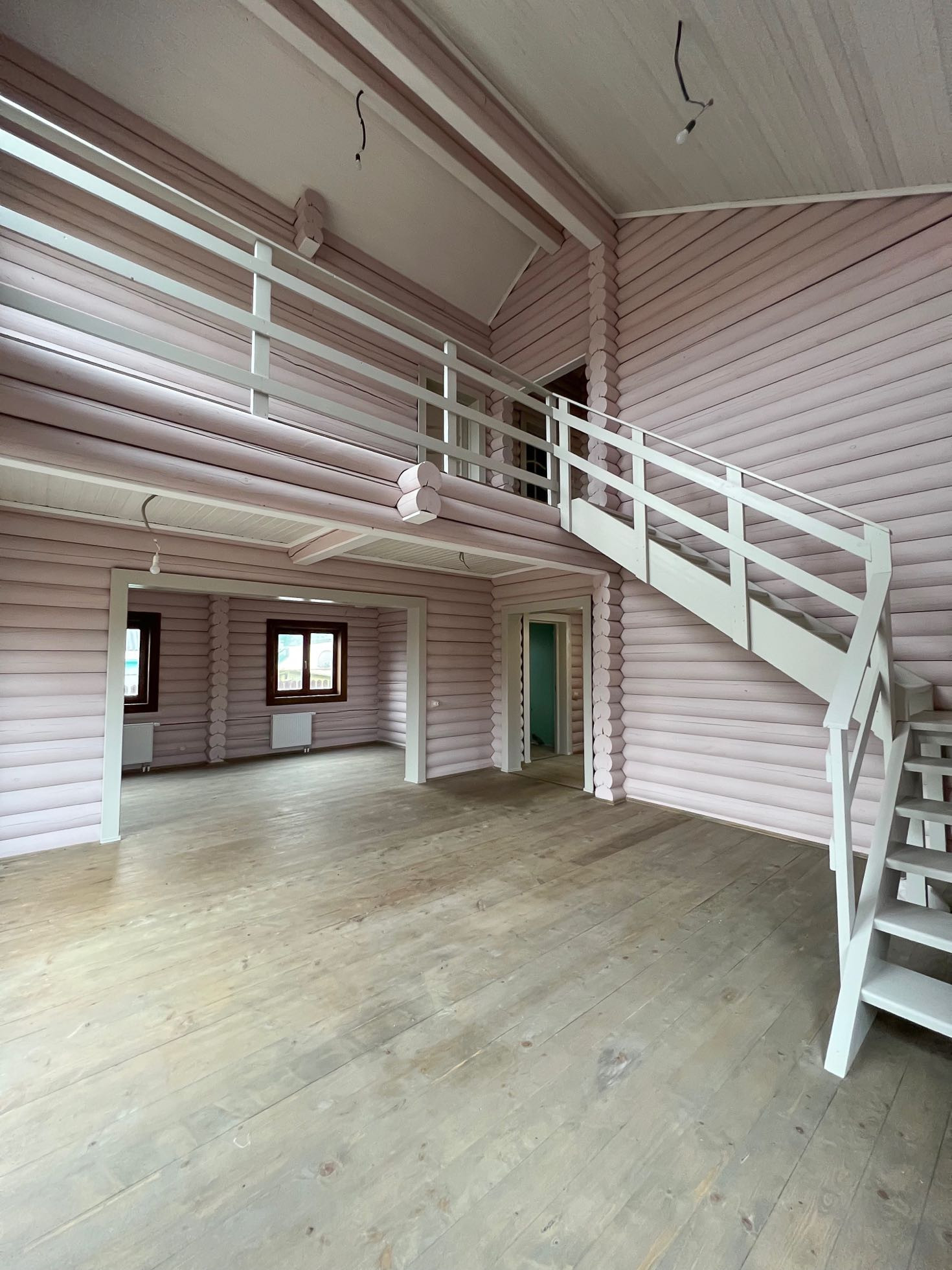 Первый этаж - две комнаты, гостиная со вторым светом и зона кухни с выведенными коммуникациями для подключения, санузел.