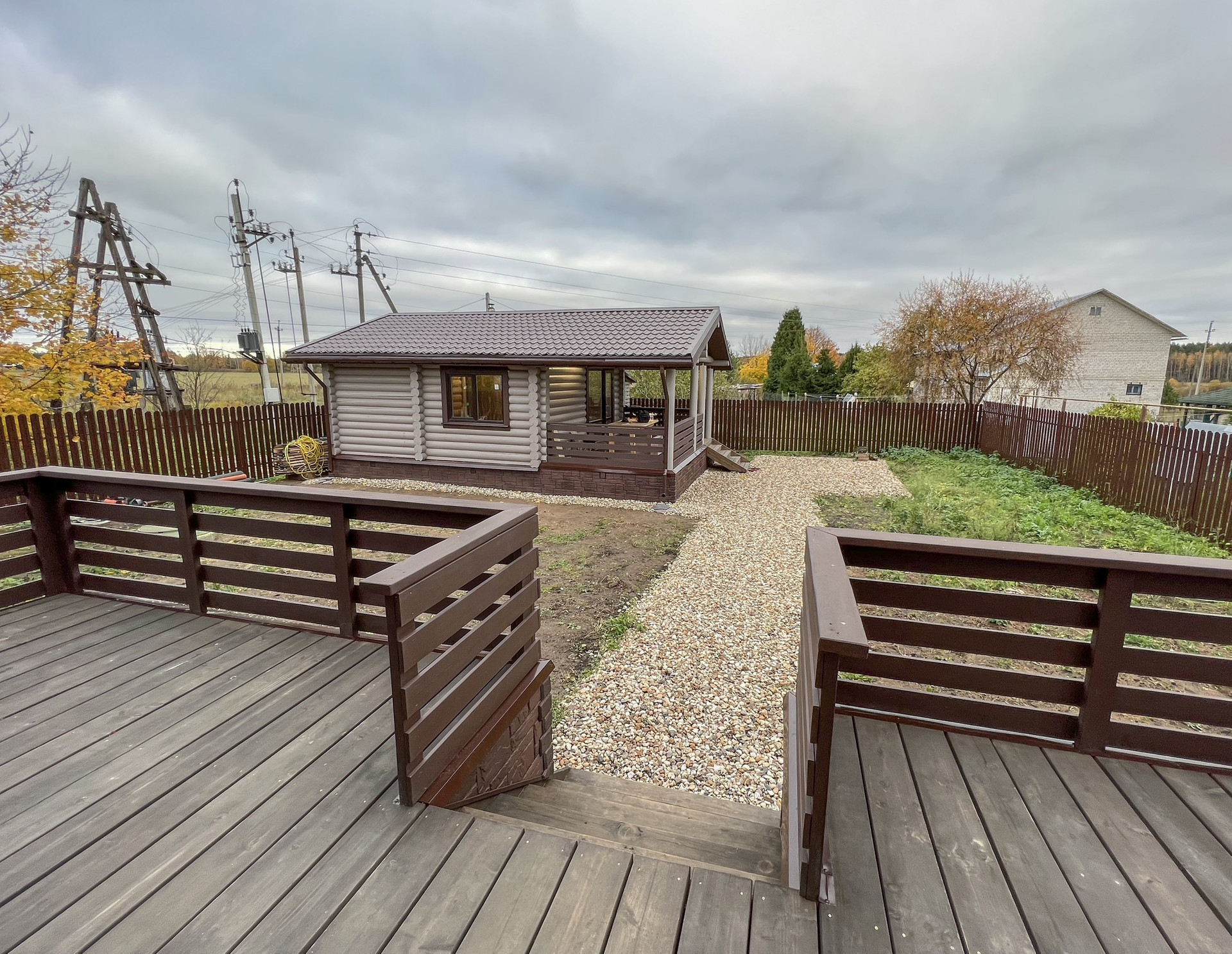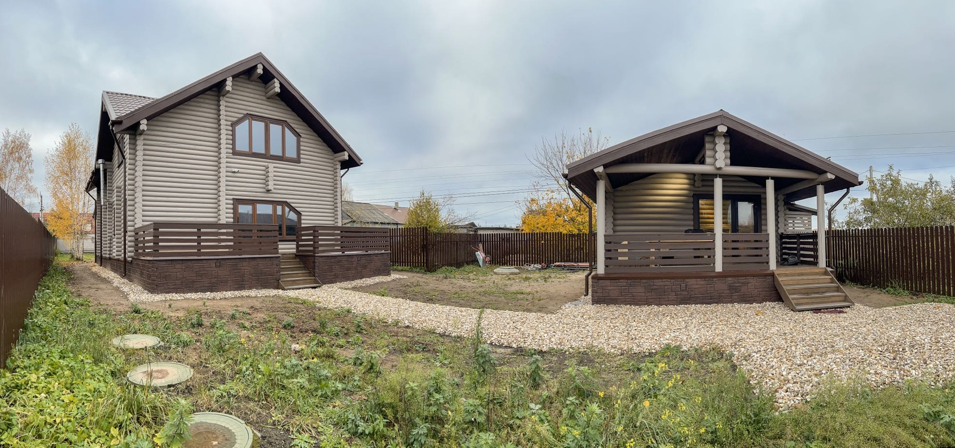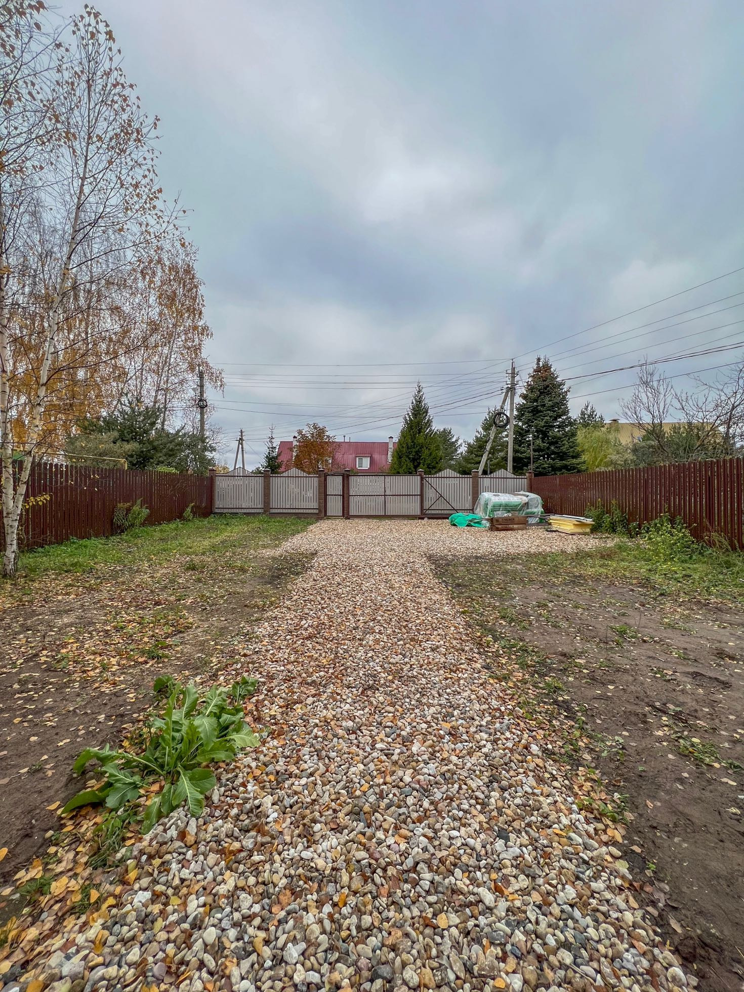 Преимущество расположения - широкий отступ от внутренней поселковой дороги. Задняя часть участка без прилегающих построек и соседей.