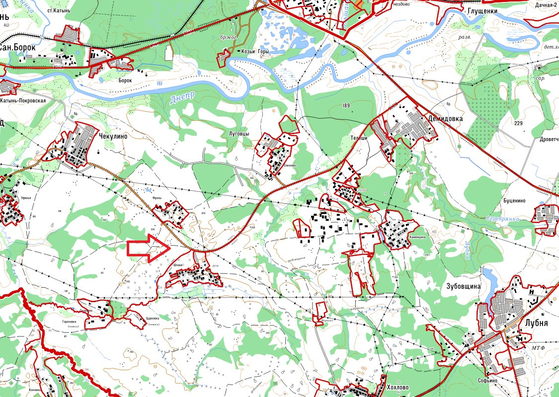 Слева и справа строятся котеджные посёлки (в Фролах и Шпаках).