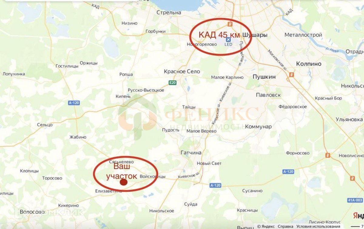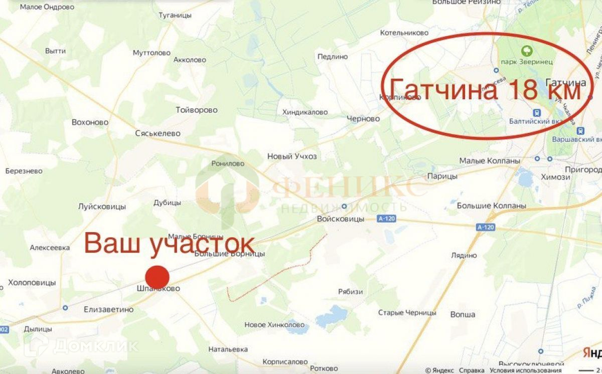 Станция ж/д Елизаветино - 4км, Гатчина - 18км, КАД - 45км.