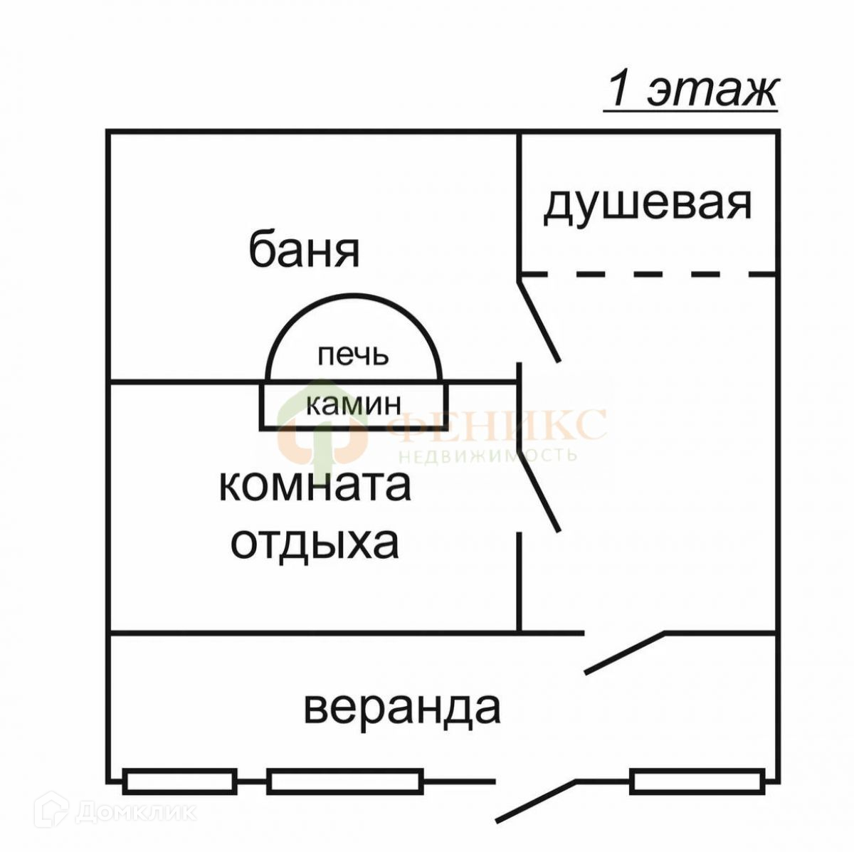 1ый этаж: веранда с кухней, комната отдыха с камином “Termofor”, парная, душевая;