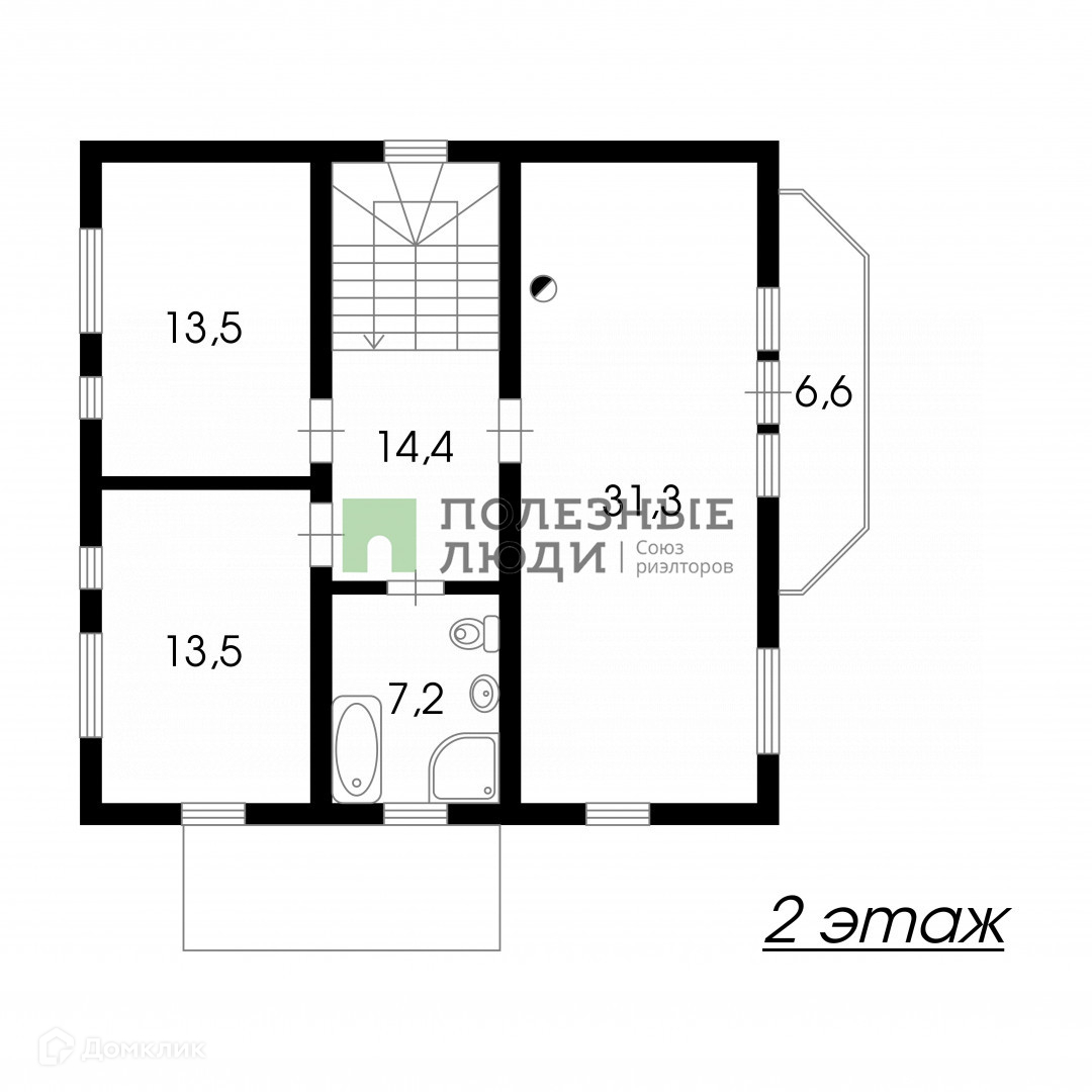 Жилая площадь 72.7 м2