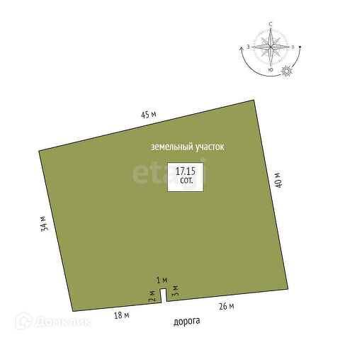 Площадь участка 17.15 сот.