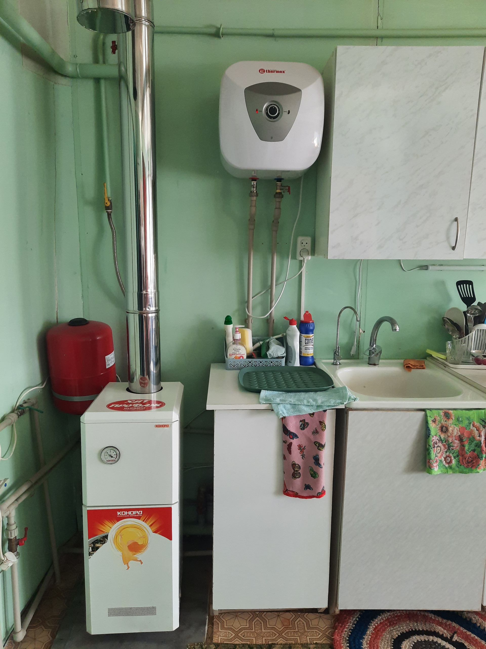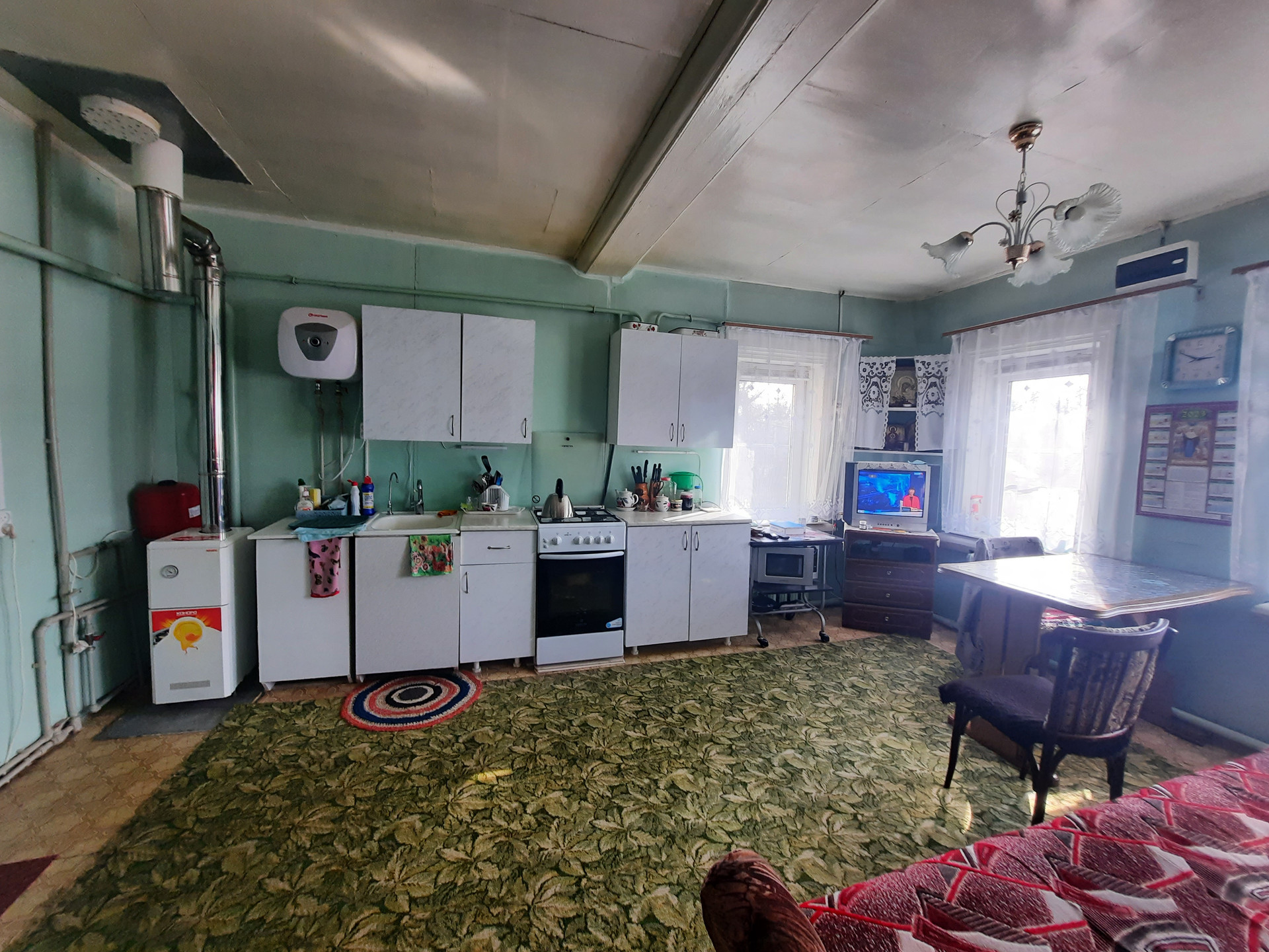 В доме пластиковые стеклопакеты, водопроводные трубы металлопластик, высота потолков 2,5 м., новый котел, бойлер.