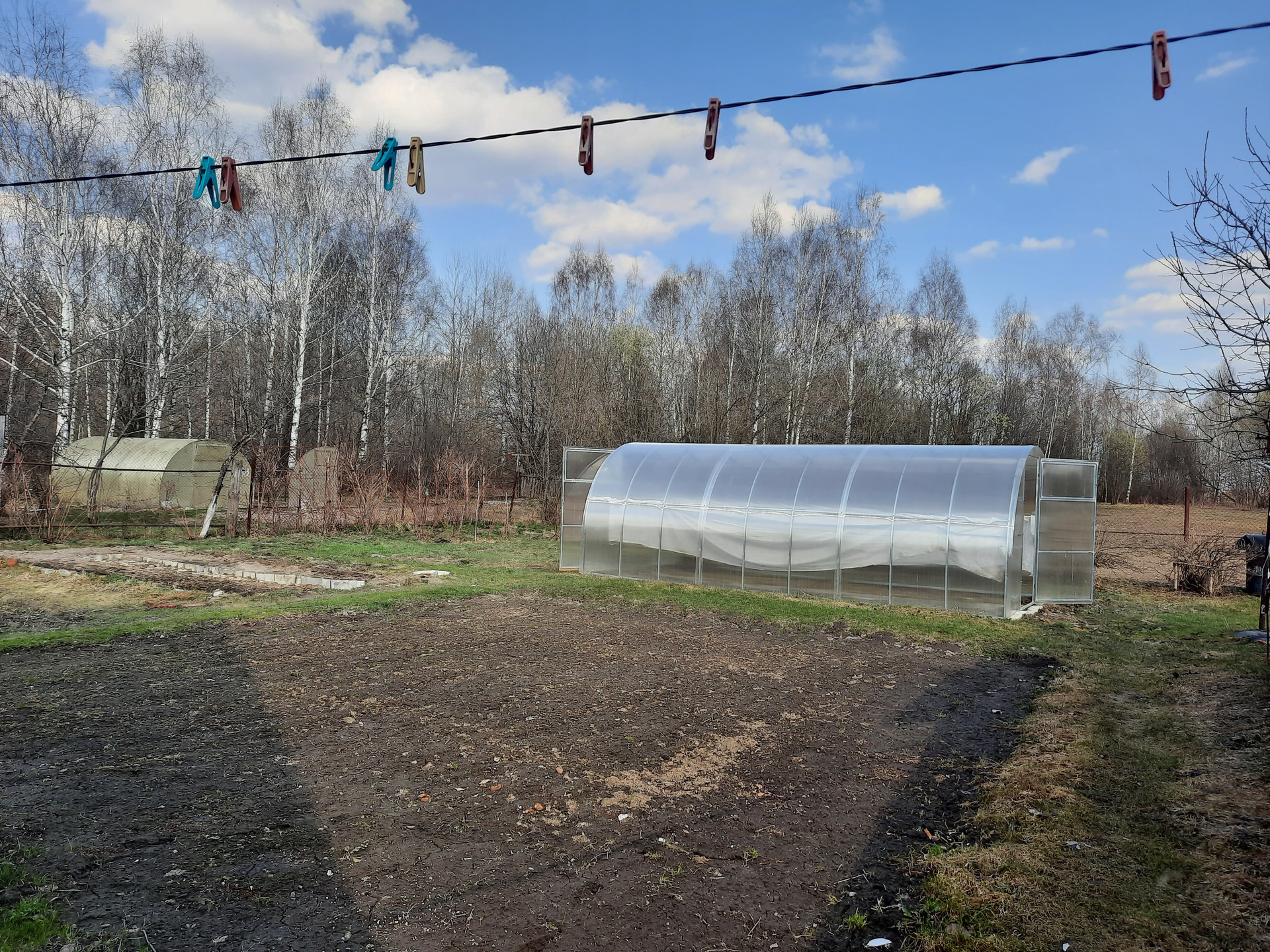 На участке большой двор, баня, ягодные кустарники, плодовые деревья, новая теплица.