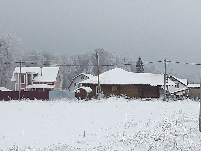 На участке возведен дом с верандой под отделку из экологического материала - оцилиндрованного бревна, площадью 137 кв.м., с верандой, на ленточном армированном фундаменте. В этом же стиле имеется работающая банька. Проведение газа по гос. программе, рядом есть водопровод.