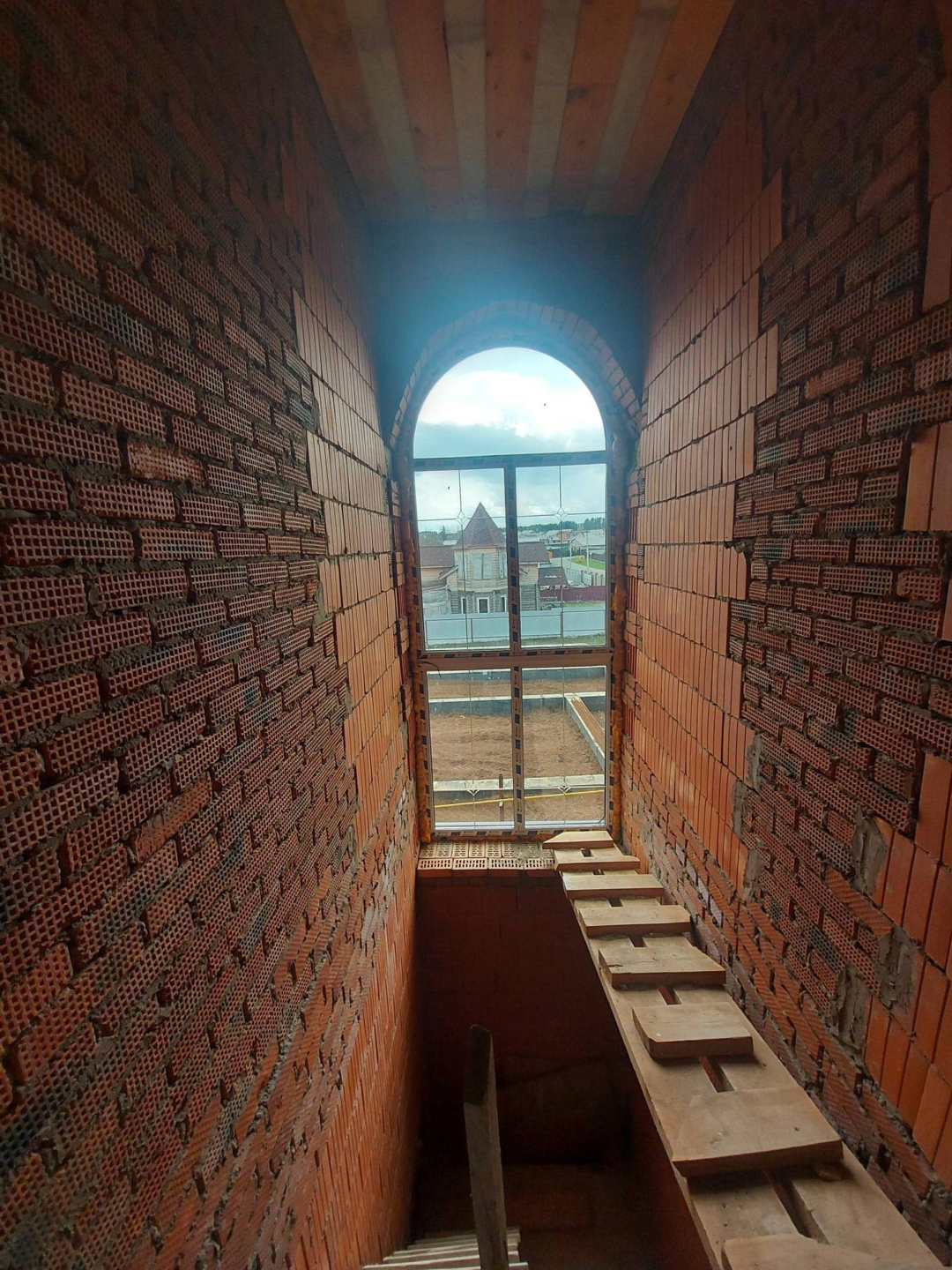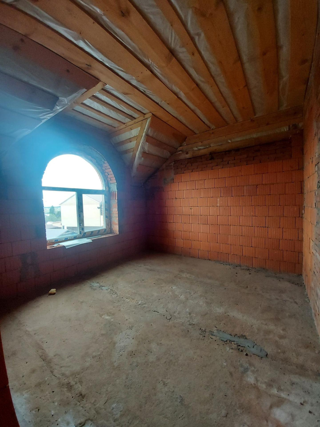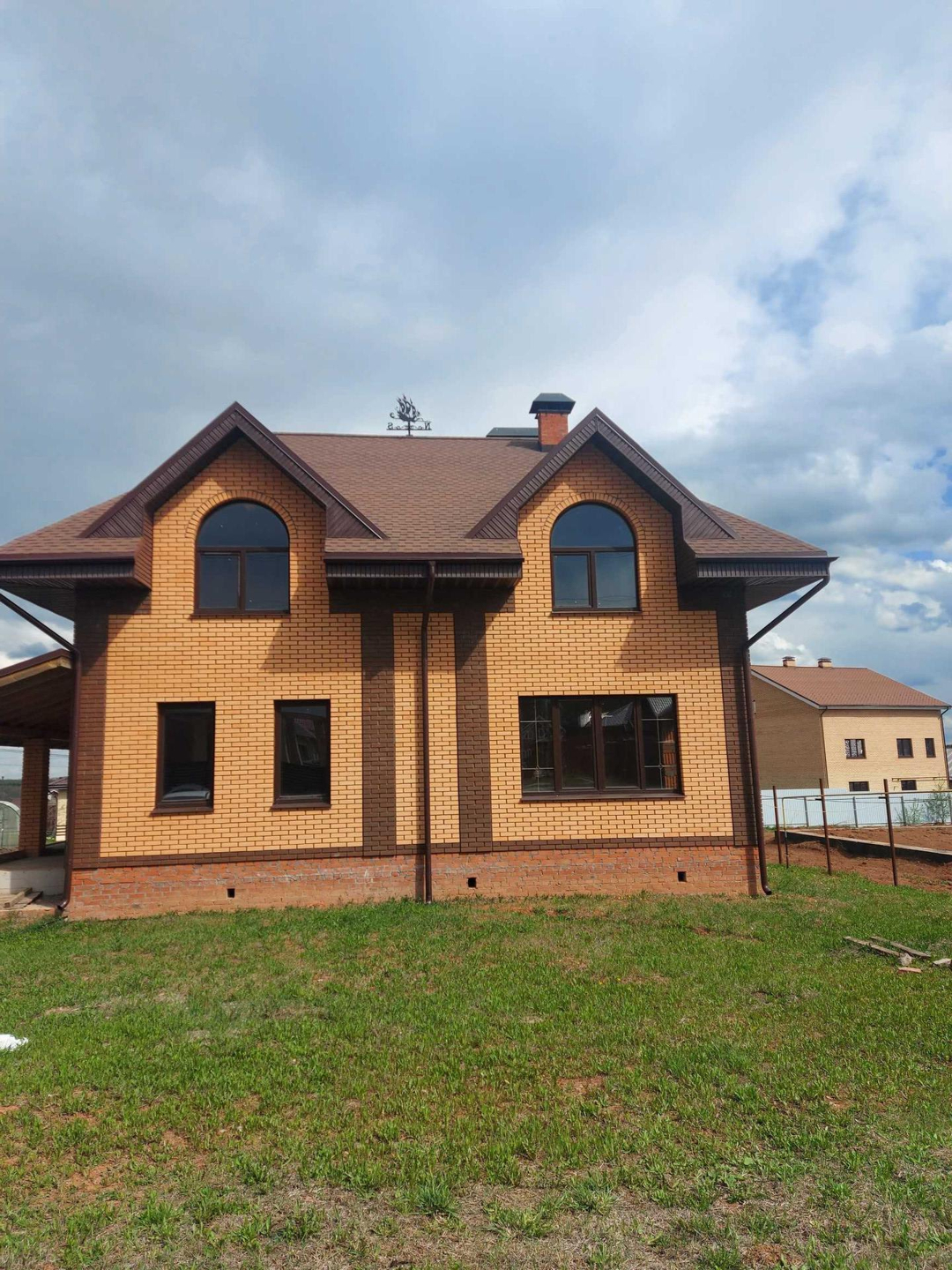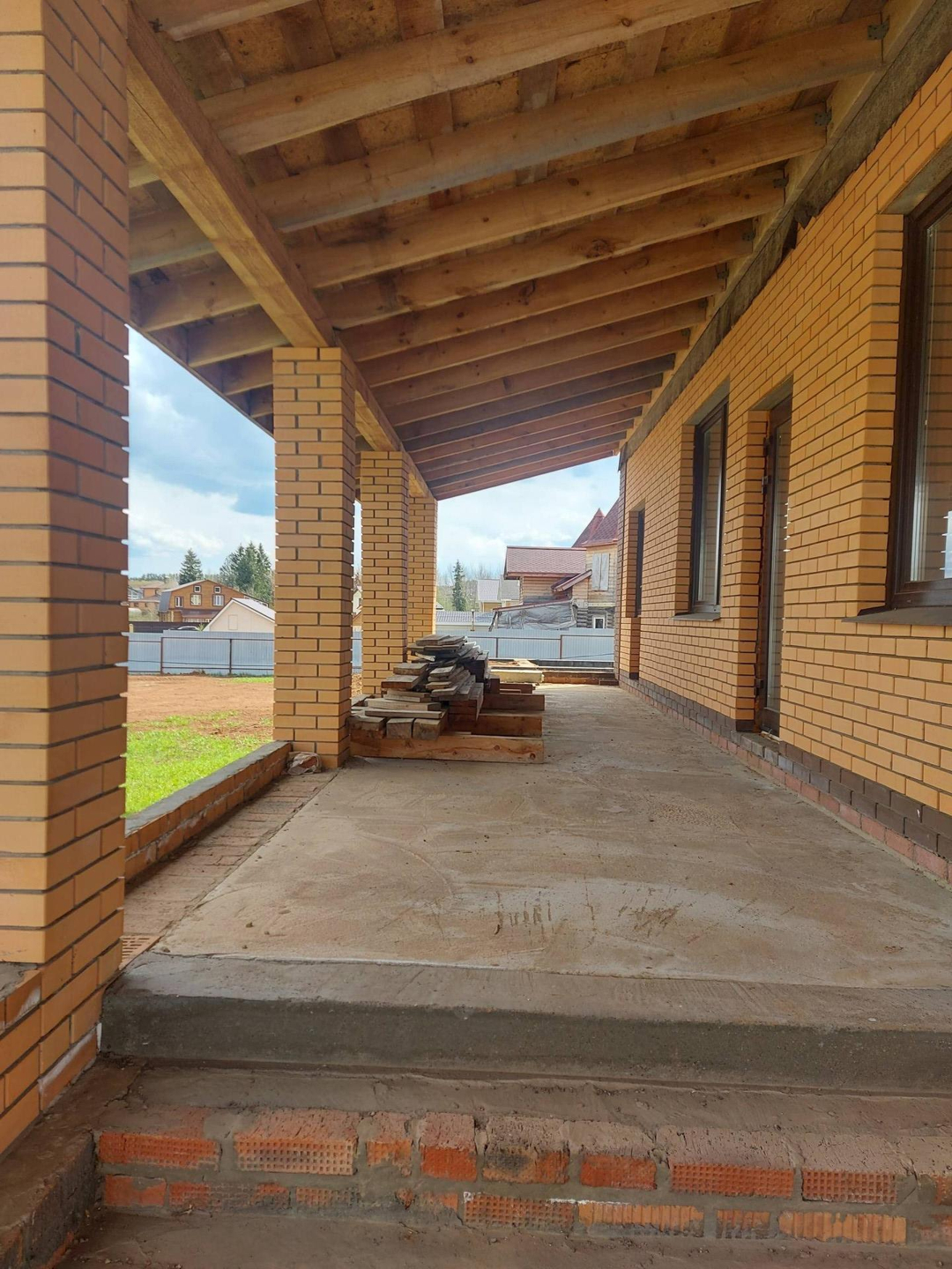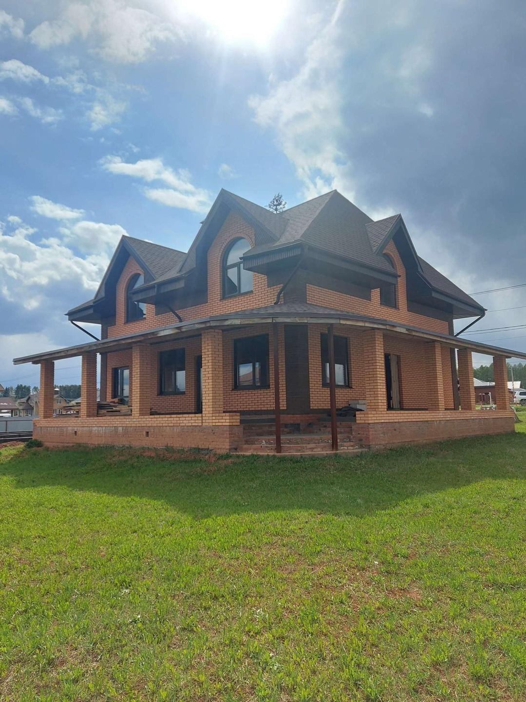 Дом изготовлен из керамических блоков Porotherm (керамические блоки Porotherm – отличаются особой морозостойкостью, паропроводностью, способностью сохранять тепло внутри здания зимой и прохладу летом) облицованных фасадным кирпичом. Фундамент свайно-ленточный с заглублением свай 2м. Терраса и дом на едином  фундаменте. Плиты перекрытий первого и второго этажа железобетонные. Есть техническое подполье. Кровельный материал мягкая кровля, в сочетании с высоким чердаком достигается эффект бесшумности во время дождя. Дом строился с соблюдением всех строительных норм и контролем качества каждого этапа строительства. Фундамент выстаивался для набора максимальной прочности.