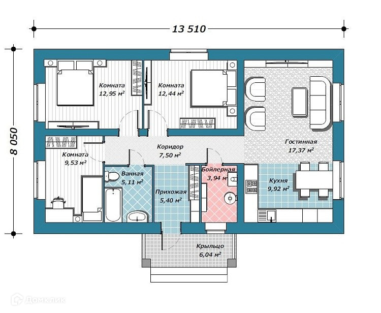 Общая площадь 90 м2