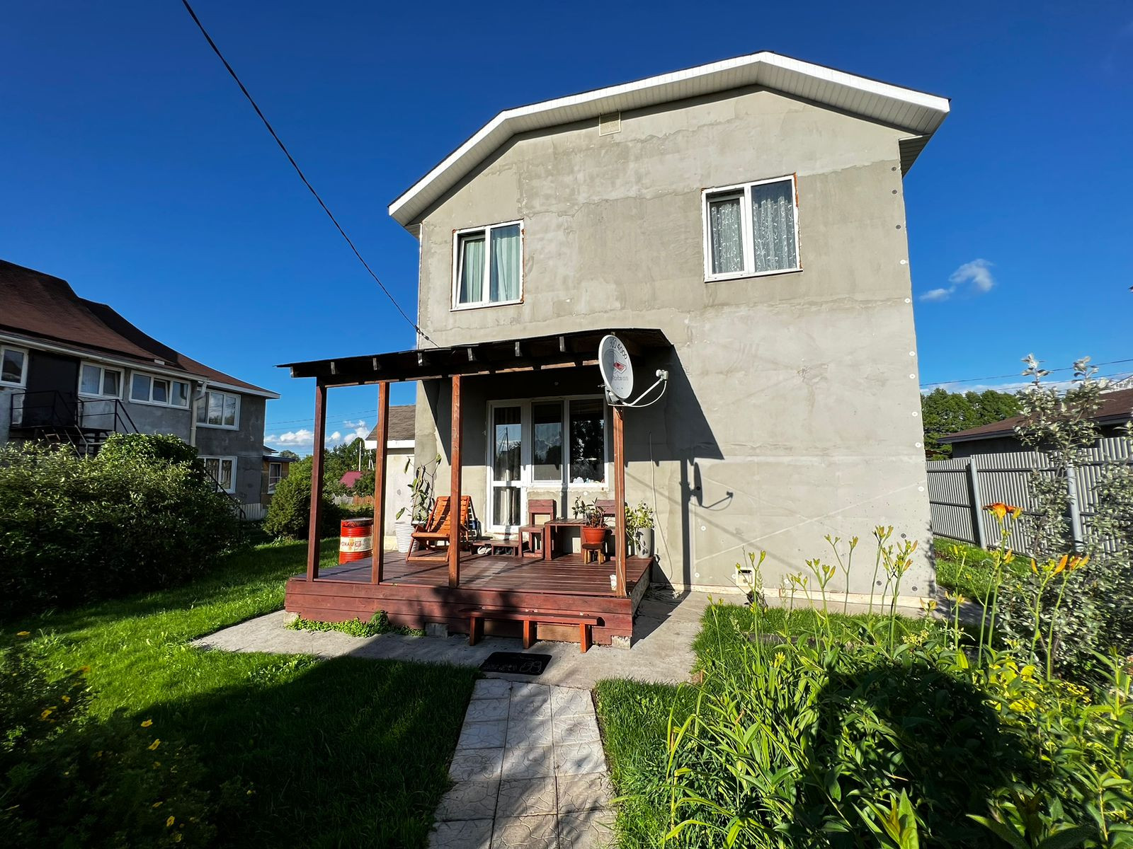 К дому пристроен гараж, крытая терраса и бойлерная.