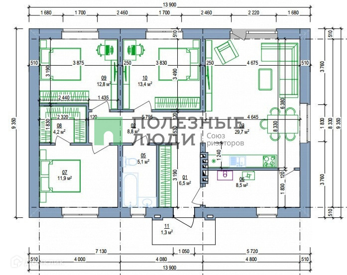 Жилая площадь 67 м2