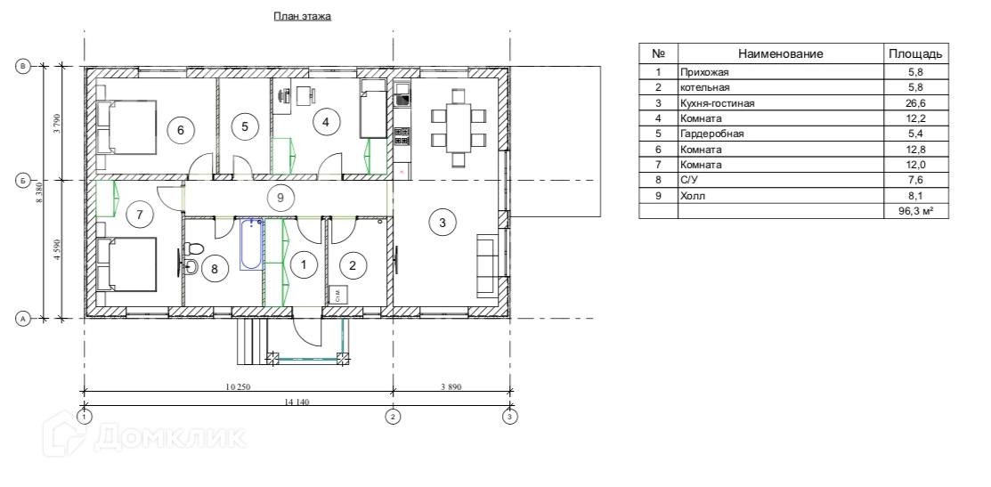 Общая площадь 96 м2