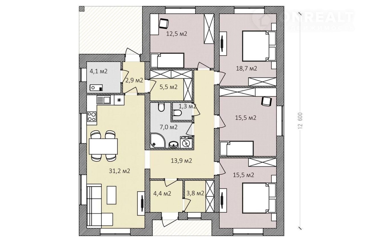 Общая площадь 136 м2