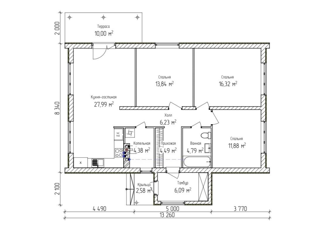 Общая площадь 96 м2