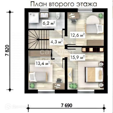 3 спальни на 2 этаже