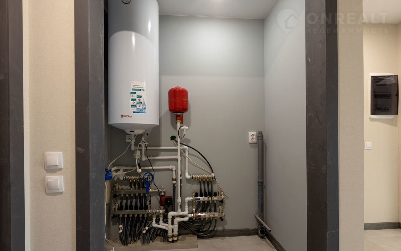 Фундамент: утеплённая железобетонная плита по ГОСТ (арматура Ø14) из 300 марки бетона. По всему дому в плите проложены тёплые полы и разведено отопление. В дом заведена вода из центрального водоснабжения, канализация, разведено электричество по всему дому.