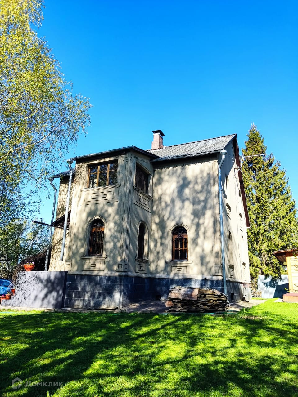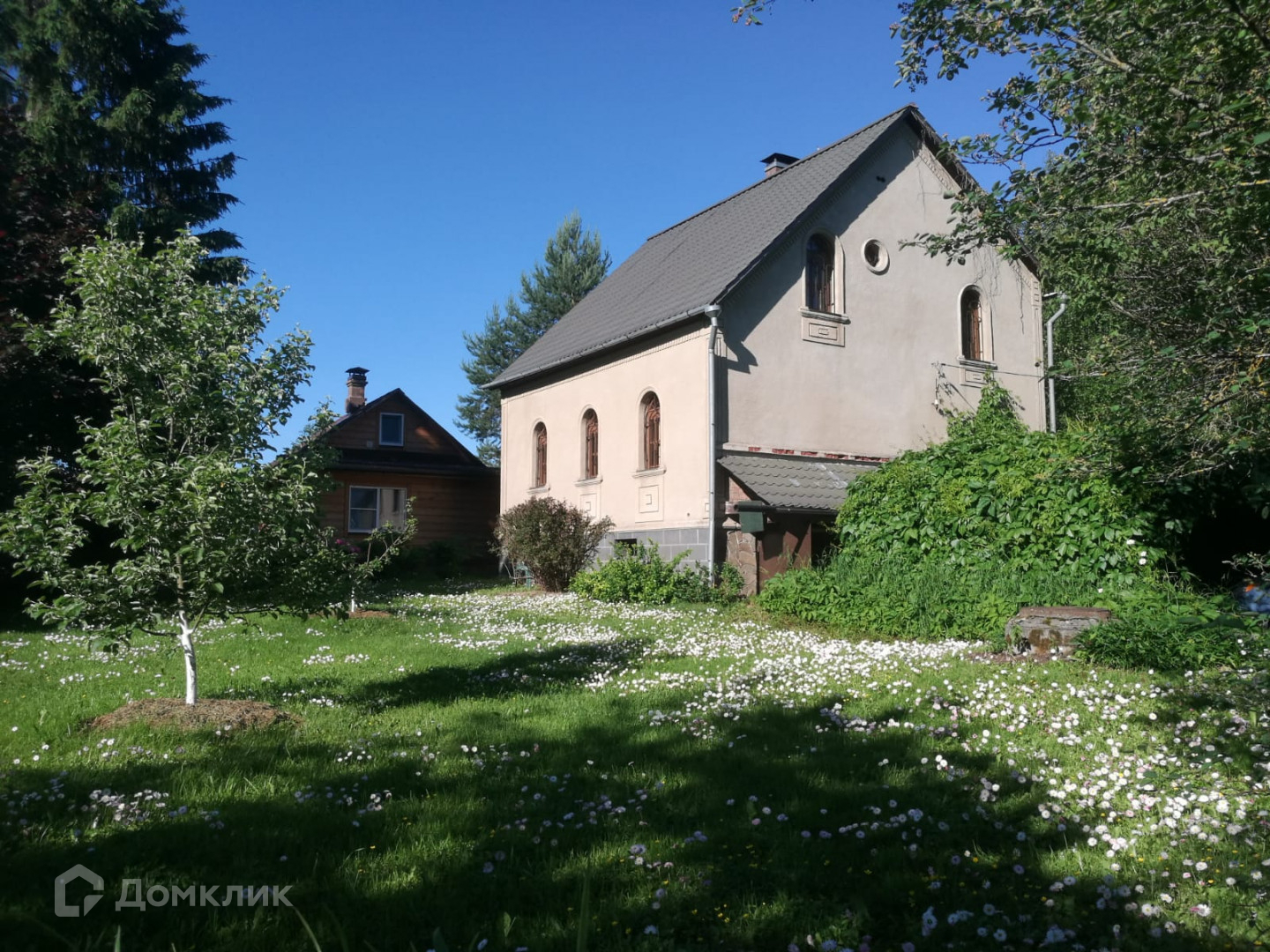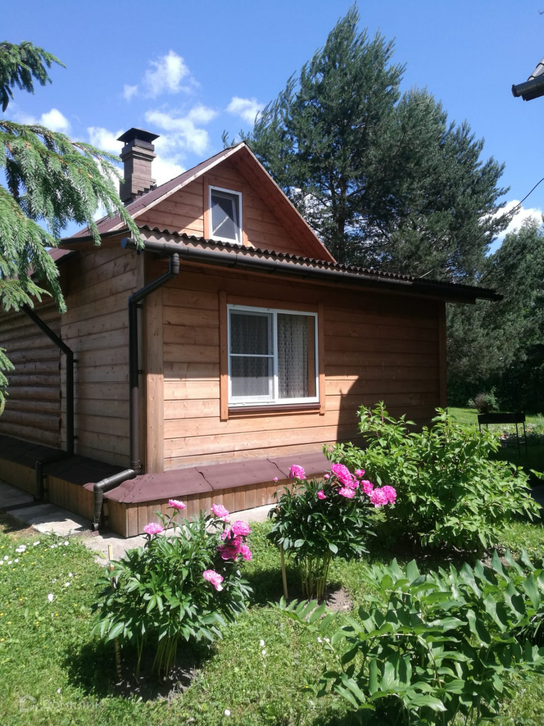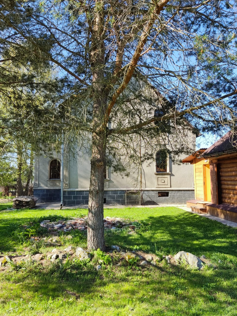 Участок 30 соток, ухоженный, огорожен по всему периметру. Есть плодовые деревья, красивые сосны, кустарники, цветники. Выполнен дренаж вокруг дома, обустроен двор, стоянка на две машины.