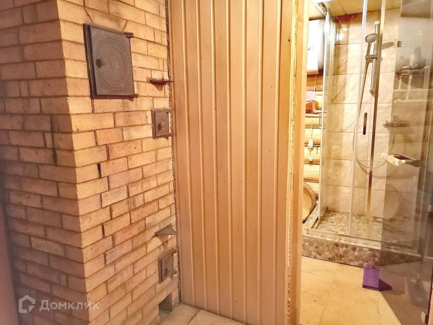 Дом построен в 2014 году из бруса (200*200), облицован кирпичом и оштукатурен "под шубу". Общая площадь - 180 кв.м, жилая 75 кв.м, 2 этажа, 3 уровня. Внутренняя отделка - вагонка (сосна), окна двойные дубовые, установлены решётки.