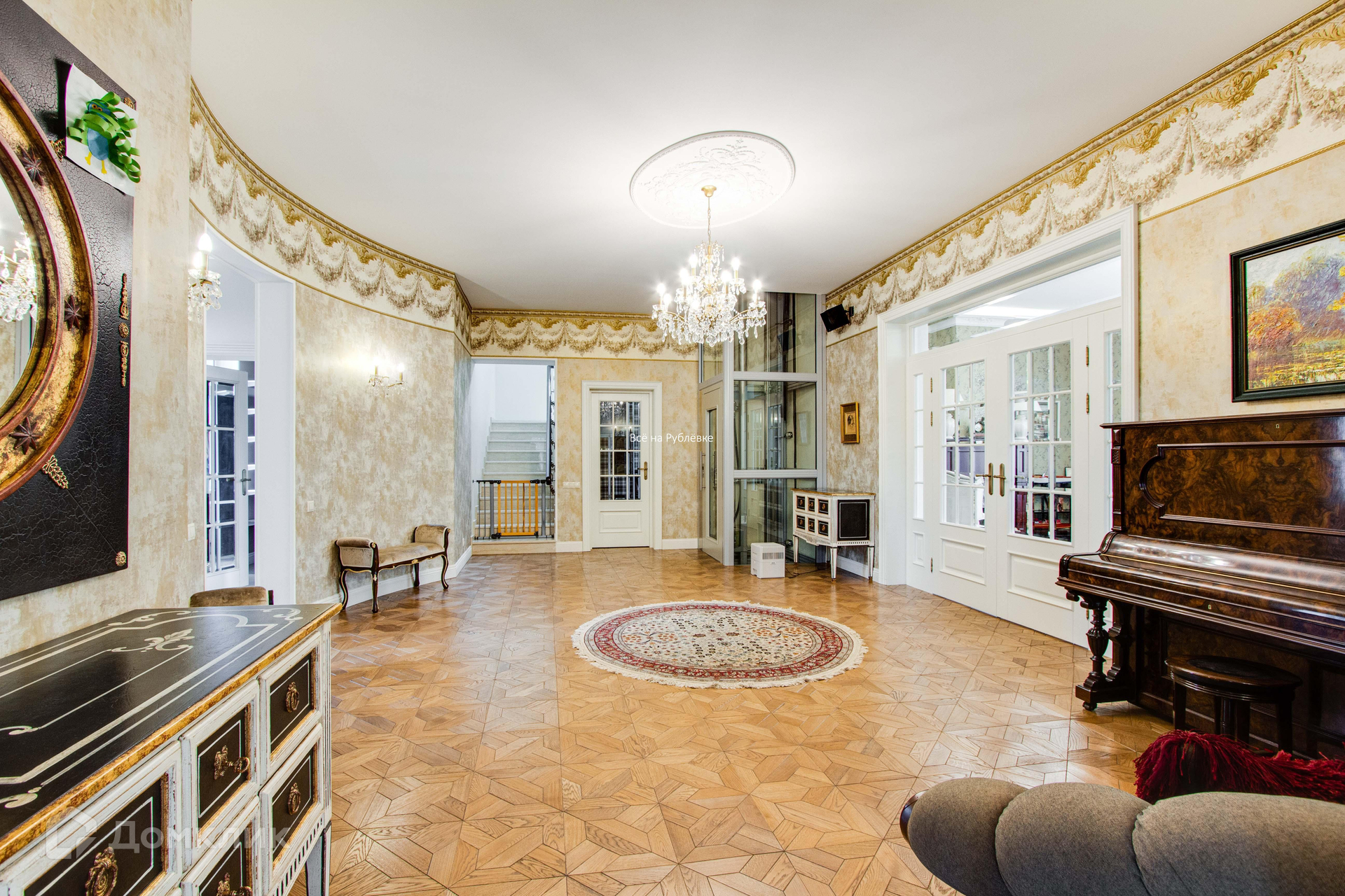 ID: 16569 Предлагается прекрасный вариант в "Шульгино". Дом общей площадью 544 кв.м. На мансарде расположены: кинотеатр, комната отдыха, cпальня, бильярдная, кладовая, постирочная. На первом этаже дома расположены: холл, кухня, столовая, камин, библиотека, санузел, гараж на 2 м/м, комната для персонала с с/у, терраса. На втором этаже дома расположены: 4 спальни с с/у и гардеробной. На территории участка имеется: гараж на 2 м/м, гостевой дом, баня.