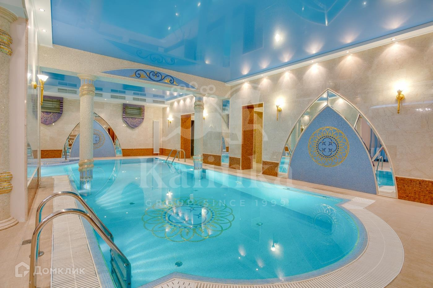 Цоколь: зона отдыха, бассейн (10х4,5м) с джакузи, каминный зал, барная стойка, комната отдыха, сауна, хамам, 2 душевые, 2 с/у;