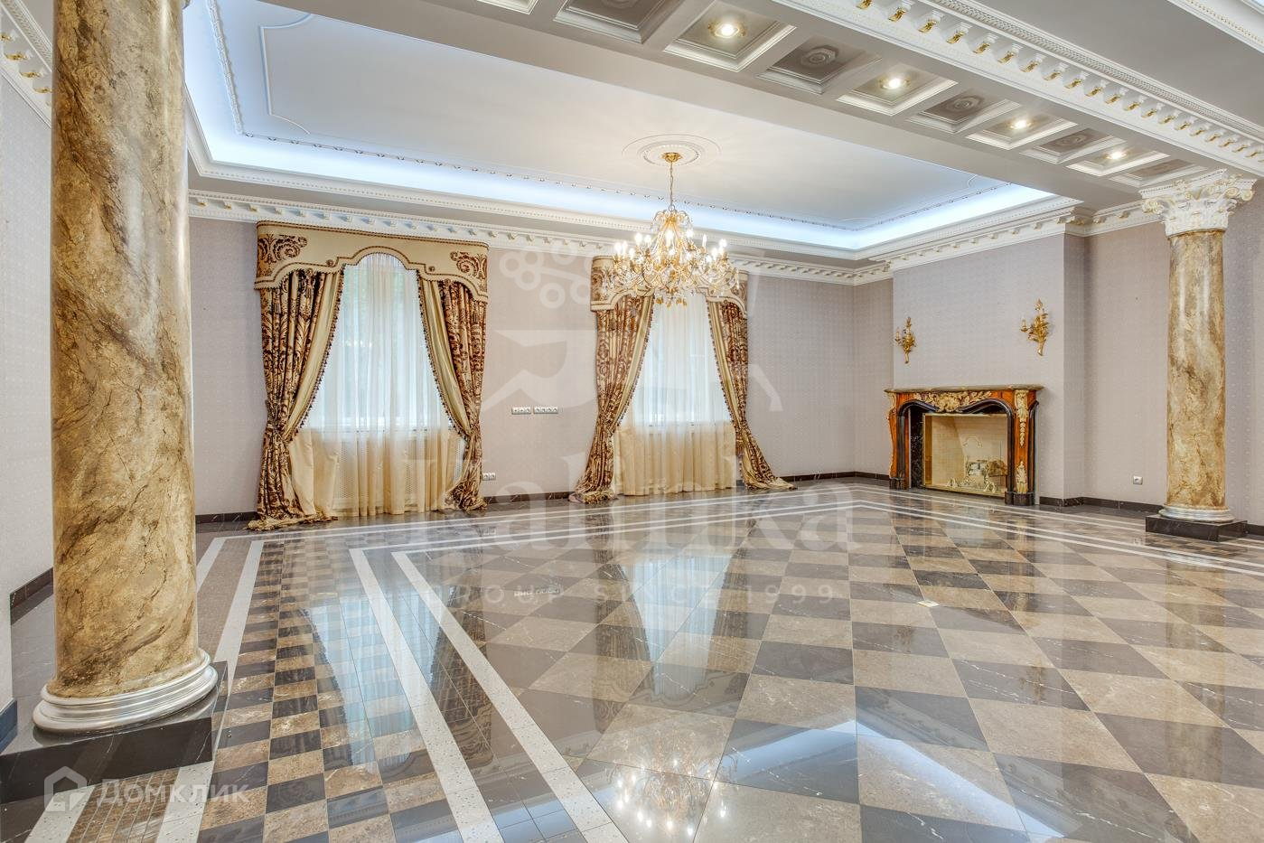 1 этаж: прихожая, гардеробные, холл, гостевой с/у, каминный зал с действующим камином, большая столовая с выходом на террасу, кухня с кладовой и выходом на террасу;