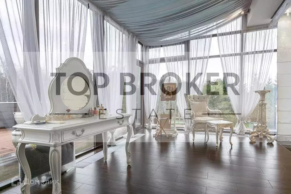 2 этаж: 3 спальни с ванными и гардеробными комнатами, хозяйская спальня имеет зимний сад и отдельные террасы; из всех помещений выходы на круговой балкон.
