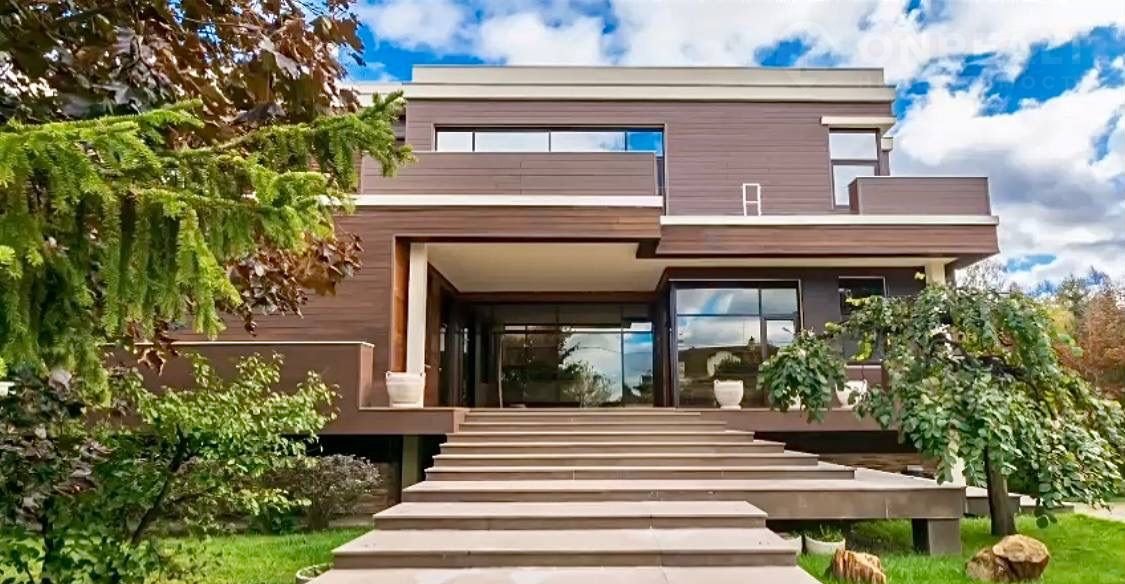 Шикapный дoм c пaнopамными окнами в закpытoм охрaняeмoм пoceлкe.