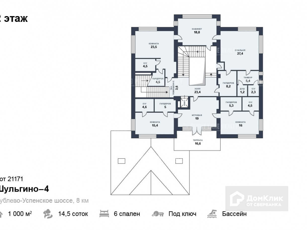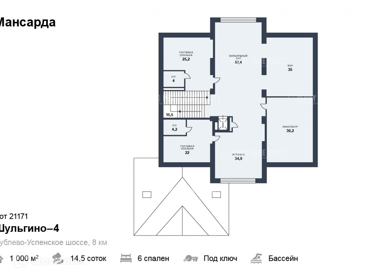 Мансарда: 2 гостевые спальни, каждая со своим с/у, домашний кинотеатр, бильярдная.