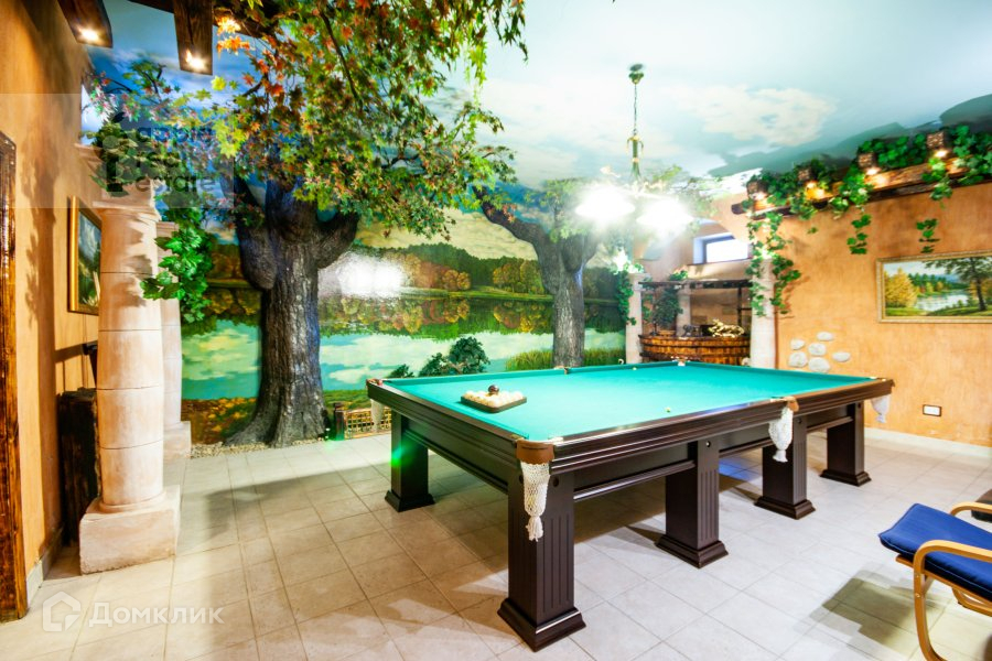 В доме много зон для отдыха: 10-метровый бассейн, большая сауна с зоной релакса, бильярд, мансардный этаж с баром.