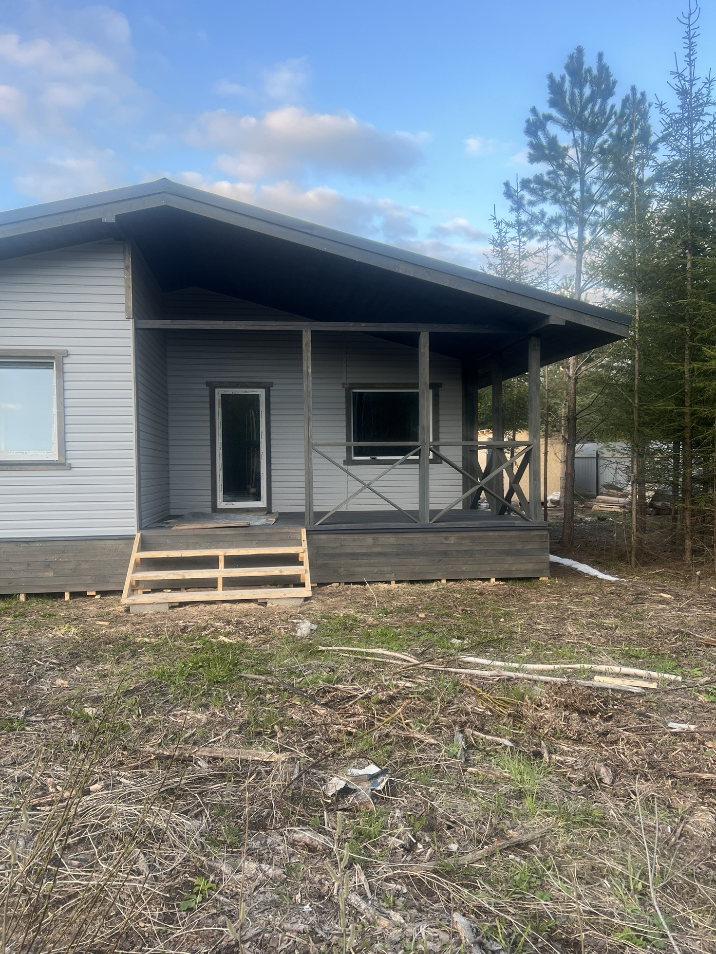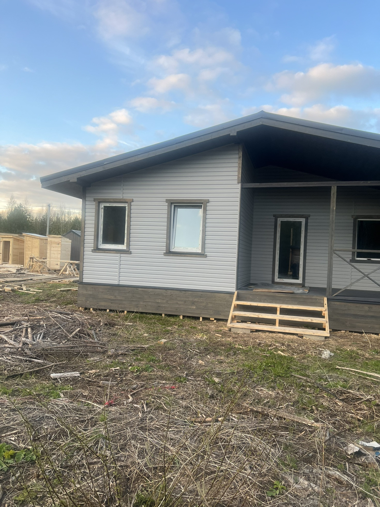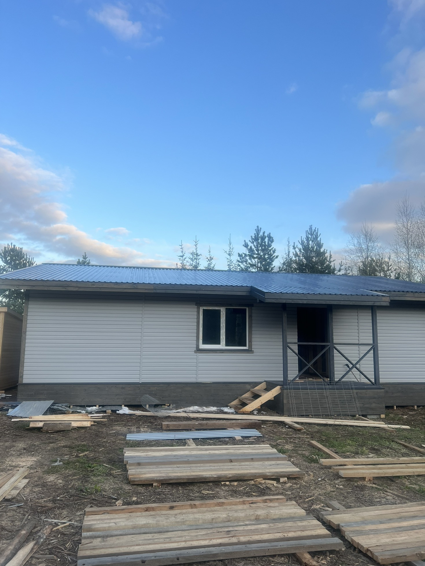 Дом по каркасной технологии.100 кВ  с отличной планировкой ,3 изолированные спальни ,кухня гостиная с выходом на террасу ,сан узел ,котельная и кладовка.Дом на этапе отделки внутренних работ .можем внести изменения под покупателя ,.Шикарный участок в сосновом лесу .дорога электричество и газ присутствует .Стоимость 4,4 миллиона в чистовой отделке без коммуникаций ,