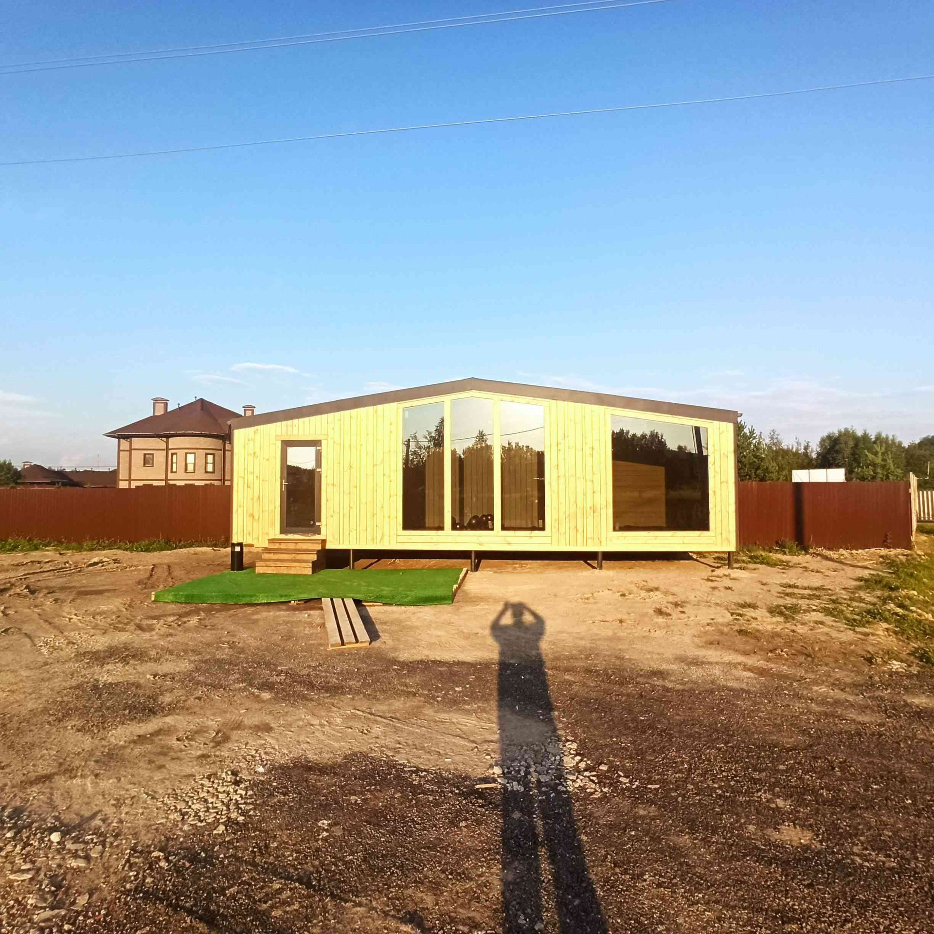 4.  На участке гостевой, модульный, новый дом, который можно легко переделать в баню, можно сдавать посуточно, можно легко пристроить второй, третий, четвёртый  модули и получить шикарный одноэтажный дом до 200 метров в будущем. Модуль сделан на заводе каркасных и модульных домов Топ Чойс. Завод рядом , в Новом Быту.