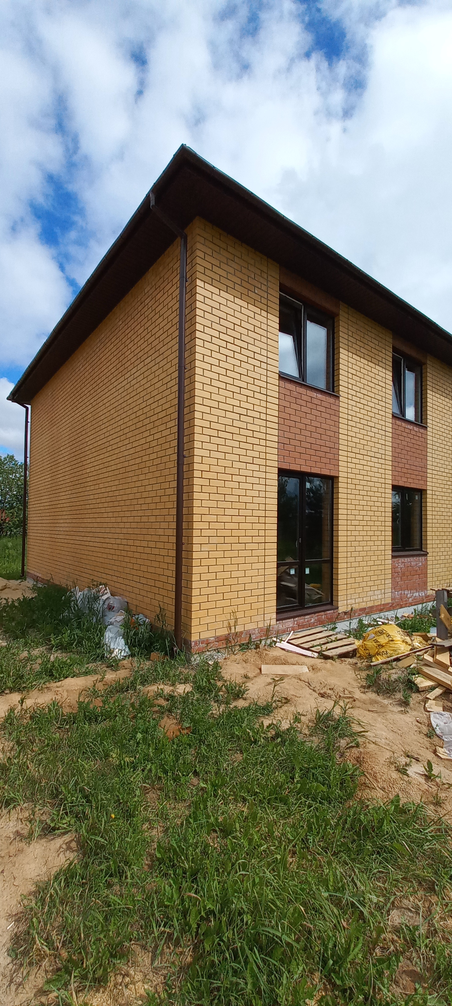 Используем только качественные, надежные и долговечные материалы: стены - керамический кирпич Porotherm с утеплением; облицовочный кирпич - керамический; пол на первом этаже - монолитный железобетонный с утеплением; межэтажное перекрытие - ж/б плиты; кровля - металлочерепица, с утеплением; окна пластиковые, дверь металлическая.
