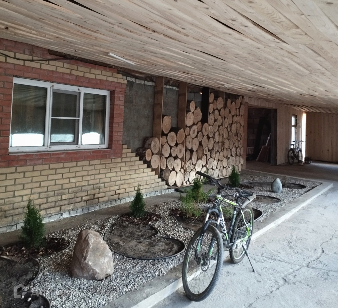 Двор под крышей с гаражом на две машины.