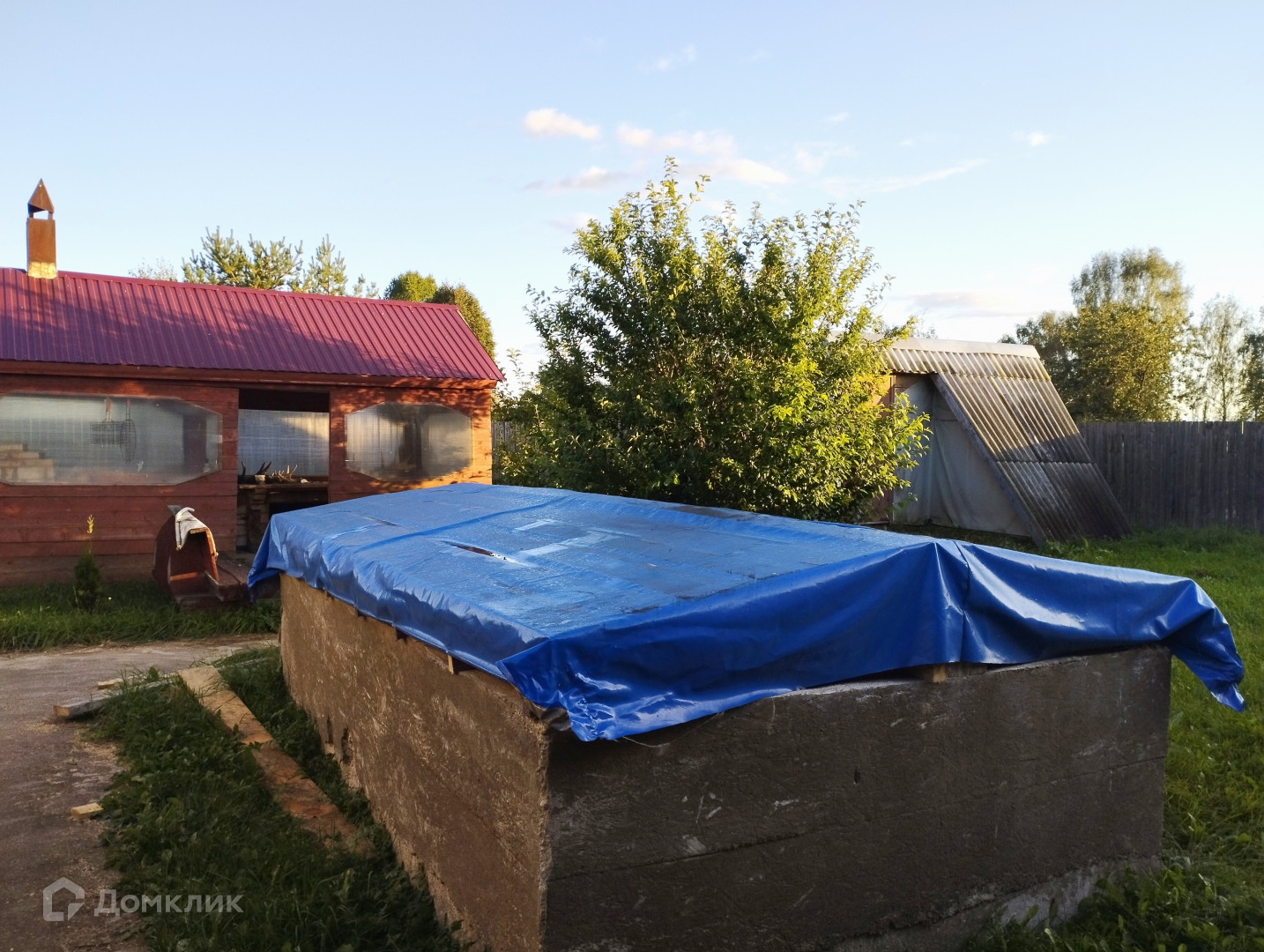 Уличный забетонированный бассейн под навесом.