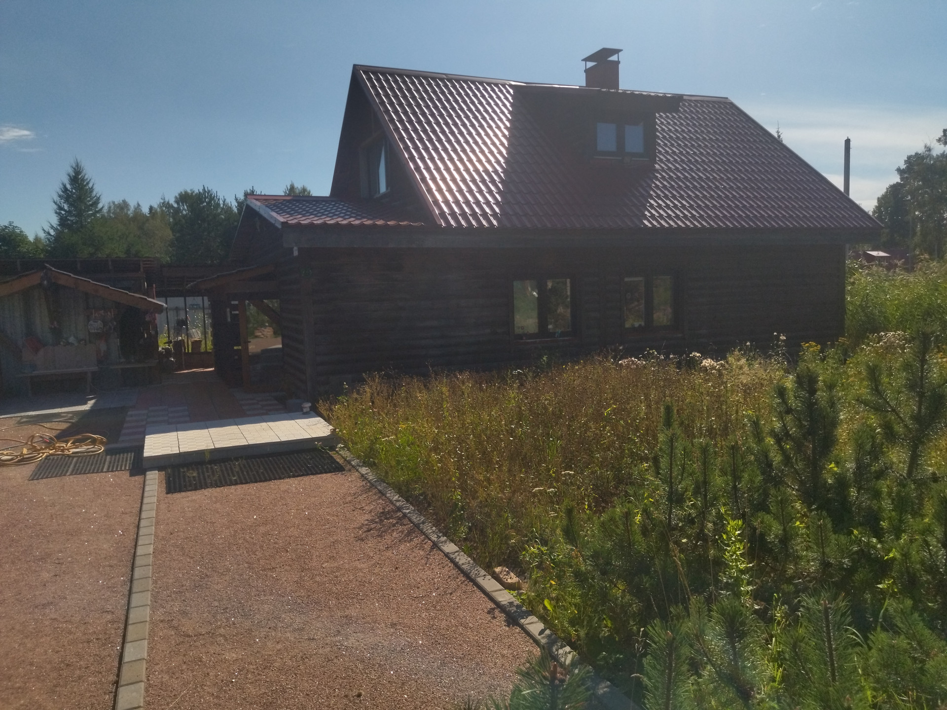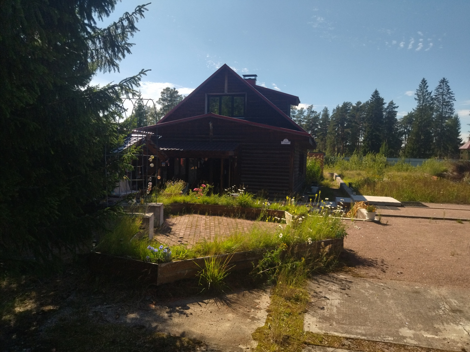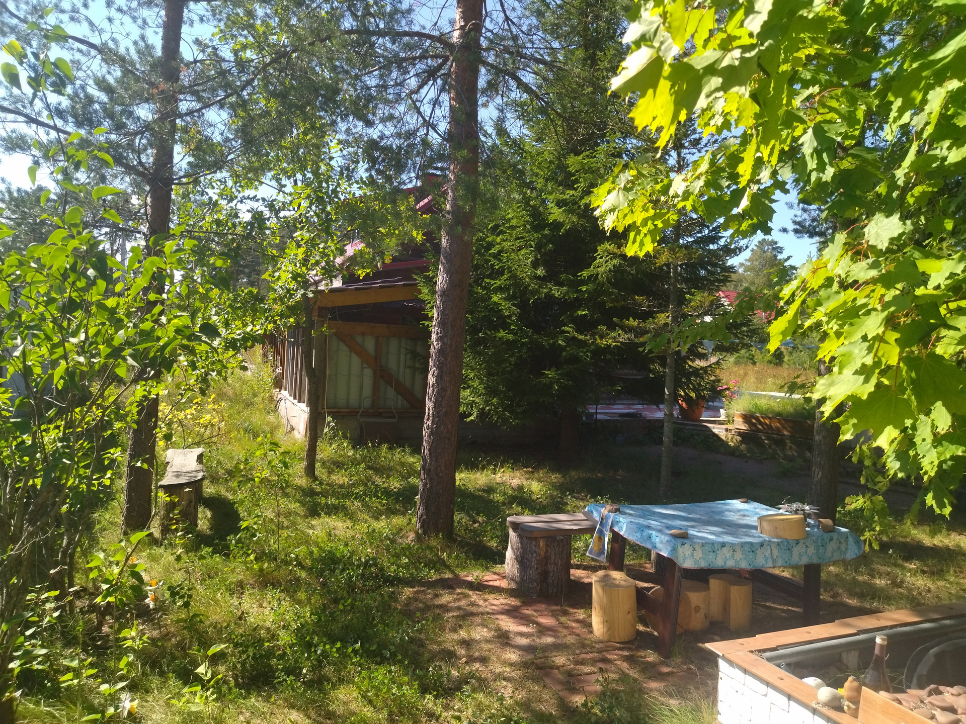 Участок 15,8 соток по факту (10 соток оформлены официально, на 5,8 соток сейчас идет межевание с последующим оформлением в собственность), ровный, разработанный, сухой (создана дренажная система),находится на возвышенности, отгорожен от соседних участков забором из металлопрофиля, от дороги отгорожен забором из сетки "рабица" на ленточном фундаменте. Участок примыкает к ровной асфальтированной дороге и имеет удобный заезд с неё в виде площадки 7х20 м., залитой бетоном толщиной 10 см.Заезд осуществляется через распашные металлические ворота, обшитые профнастилом. На участке находится исправно работающий колодец глубиной 6 железобетонных колец, огороженный и закрытый люком. На участке произрастают сосны, ели, пихты и другие насаждения.