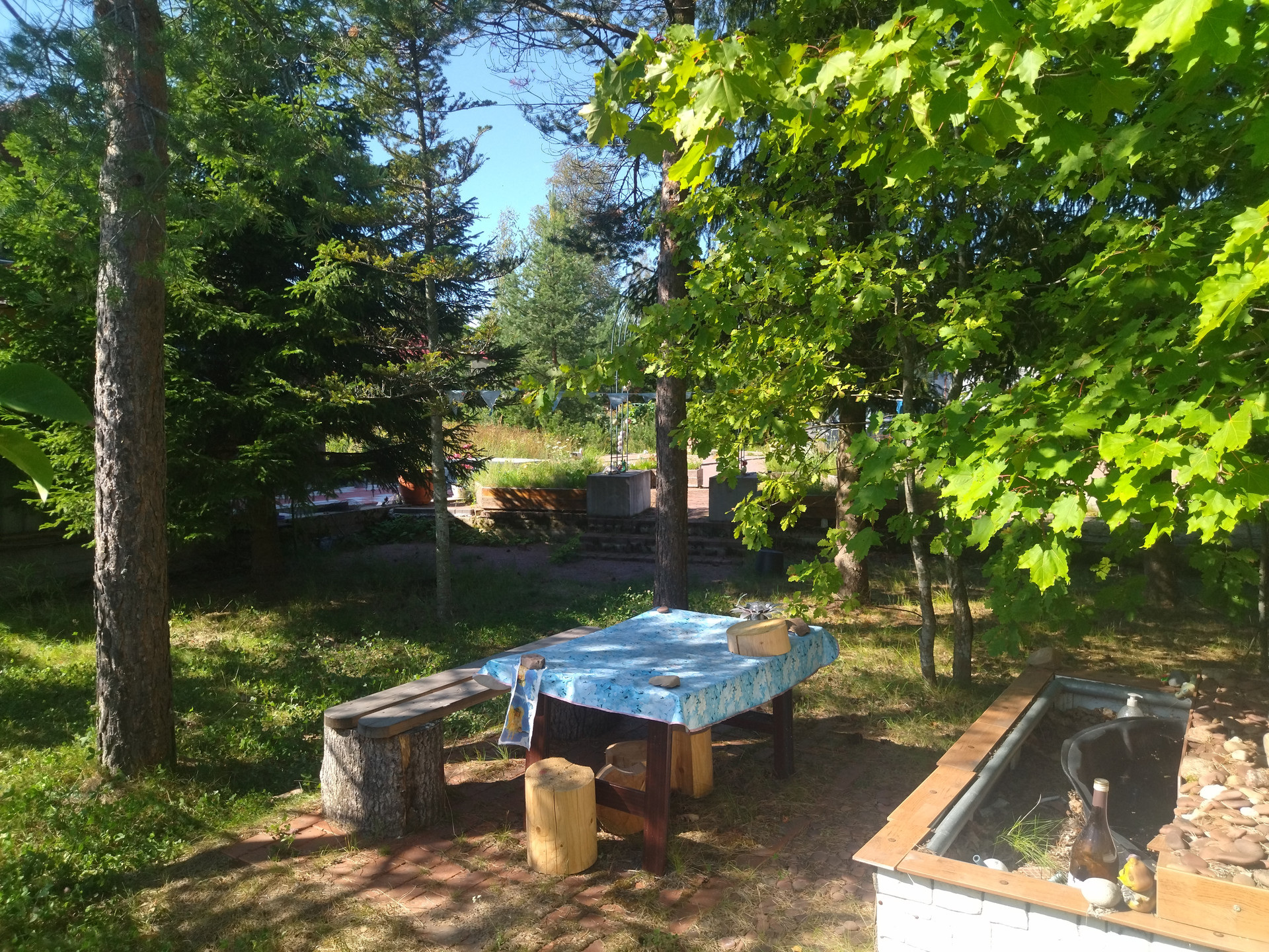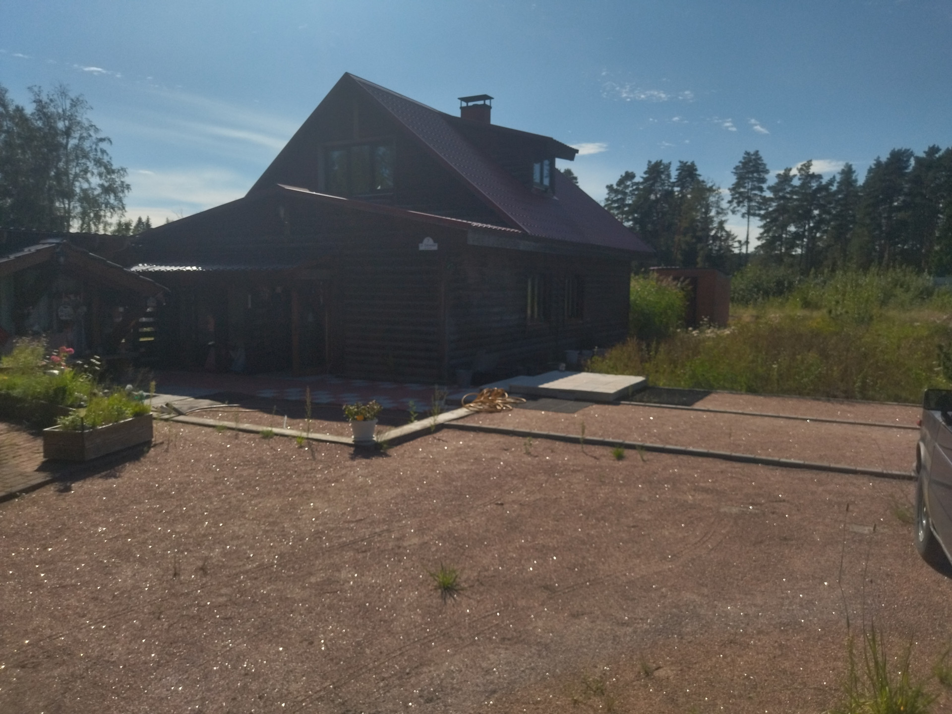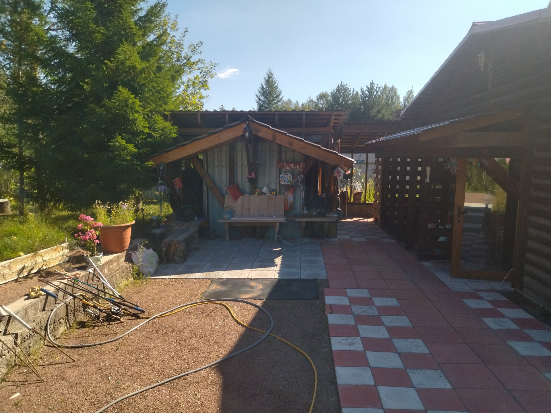 Участок 15,8 соток по факту (10 соток оформлены официально, на 5,8 соток сейчас идет межевание с последующим оформлением в собственность), ровный, разработанный, сухой (создана дренажная система),находится на возвышенности, отгорожен от соседних участков забором из металлопрофиля, от дороги отгорожен забором из сетки "рабица" на ленточном фундаменте. Участок примыкает к ровной асфальтированной дороге и имеет удобный заезд с неё в виде площадки 7х20 м., залитой бетоном толщиной 10 см.Заезд осуществляется через распашные металлические ворота, обшитые профнастилом. На участке находится исправно работающий колодец глубиной 6 железобетонных колец, огороженный и закрытый люком. На участке произрастают сосны, ели, пихты и другие насаждения.