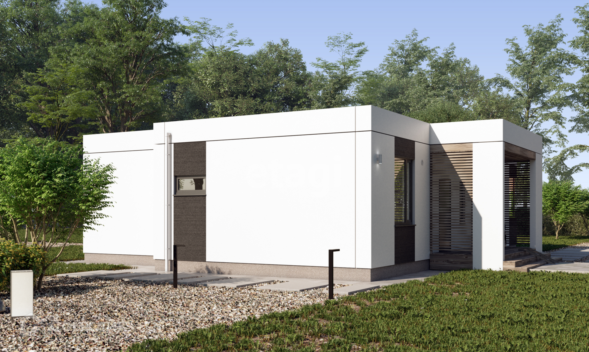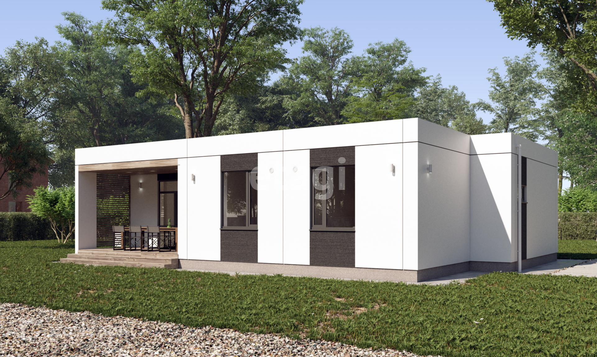 GAGARIN: одноэтажный дом с плоской кровлей, для постоянного проживания семьи.
