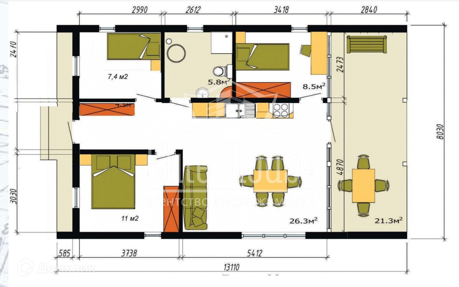* Количество спален: 3