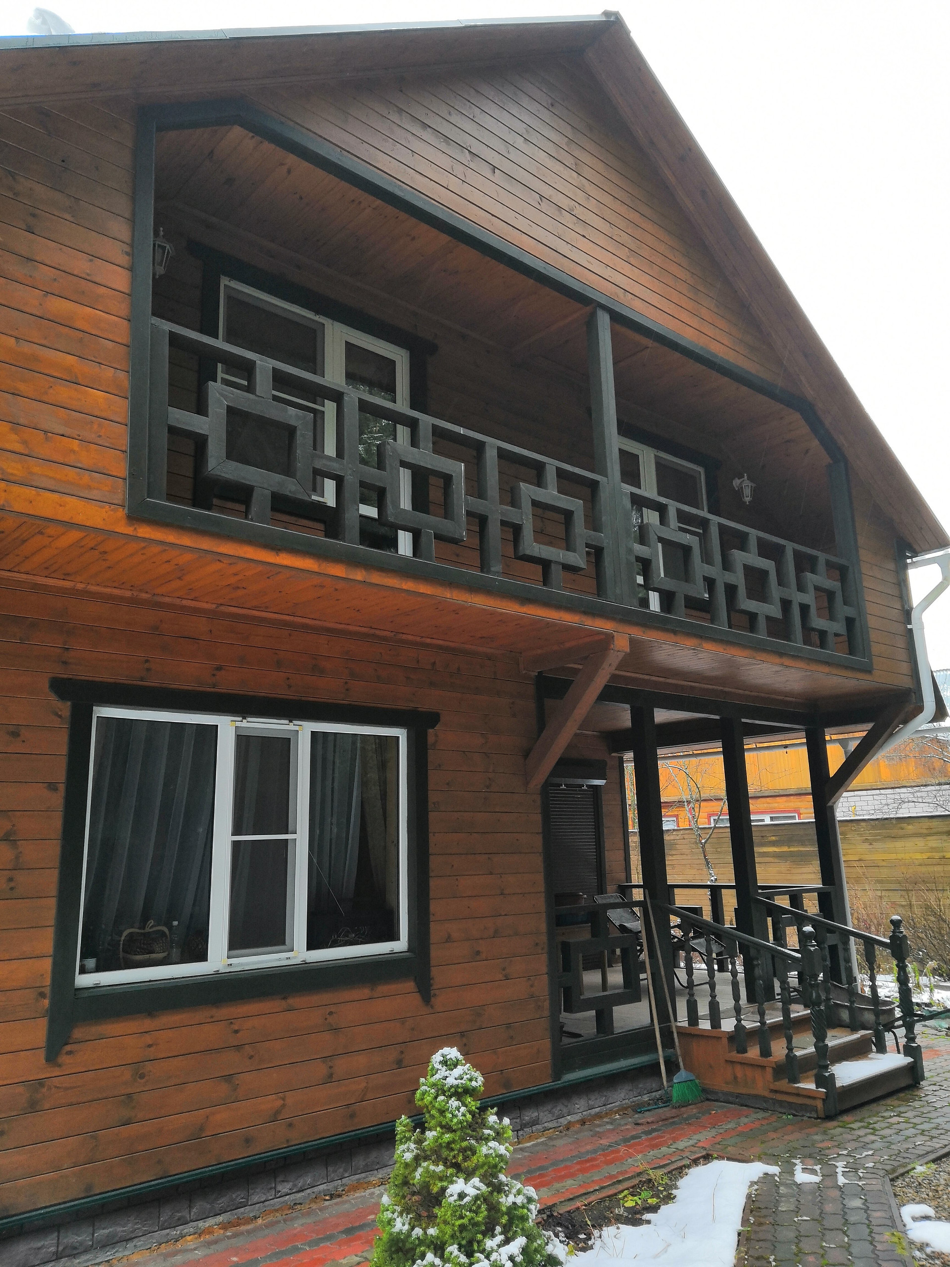 Дом построен из качественных материалов. На каждом этаже расположены три спальни и санузел.