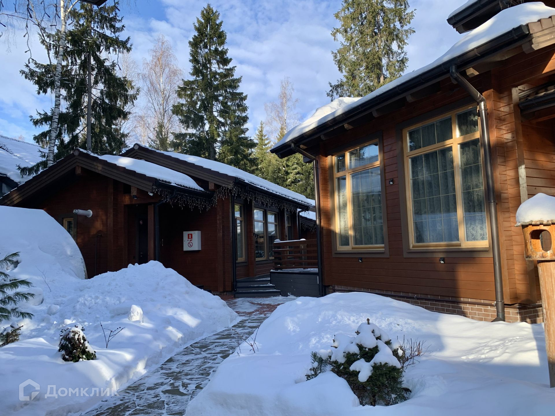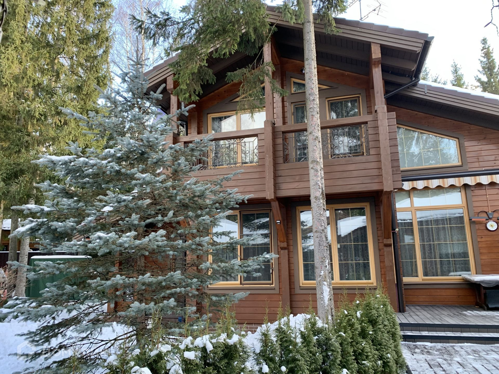 Главный дом выполнен из натурального дерева (Алтайская сосна) и обработан горячим воском, а это означает, что никакой дополнительной обработки более не требуется. Крыша - черепица Braas.