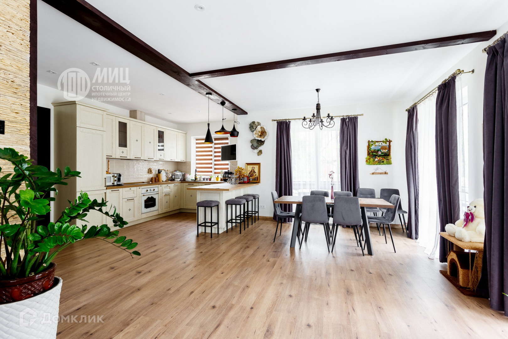 Дом полностью оборудован всей необходимой мебелью и техникой. Заезжай и живи. Встроенная кухня из натурального дерева. Мебель во всех спальнях. Оборудованная гардеробная комната.