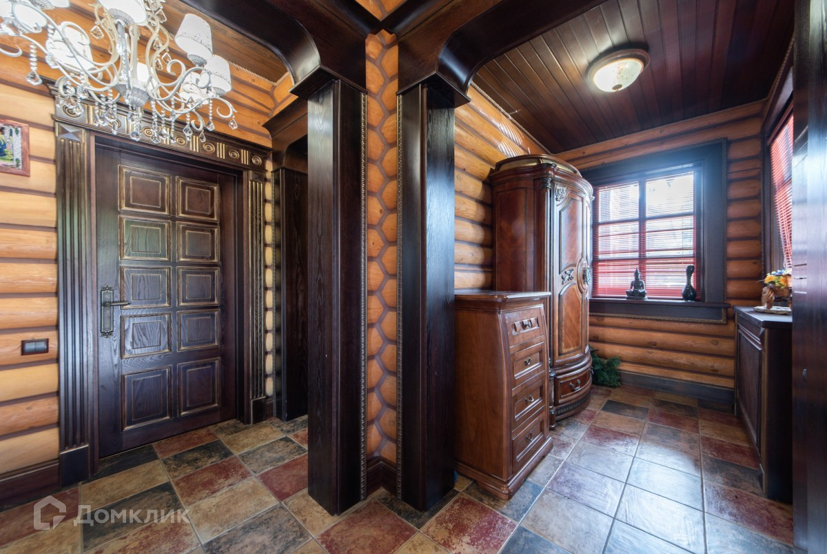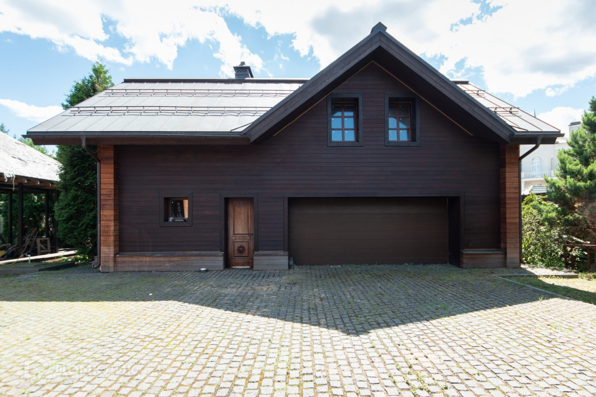 Дом выполнен из натурального дерева - лиственница; окна, плинтуса и двери - дуб; террасы - кумару; крыша - медь.