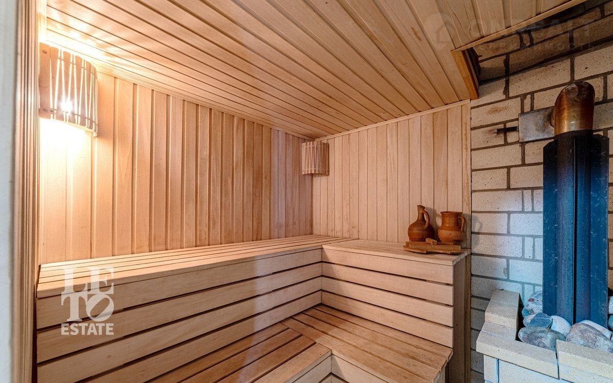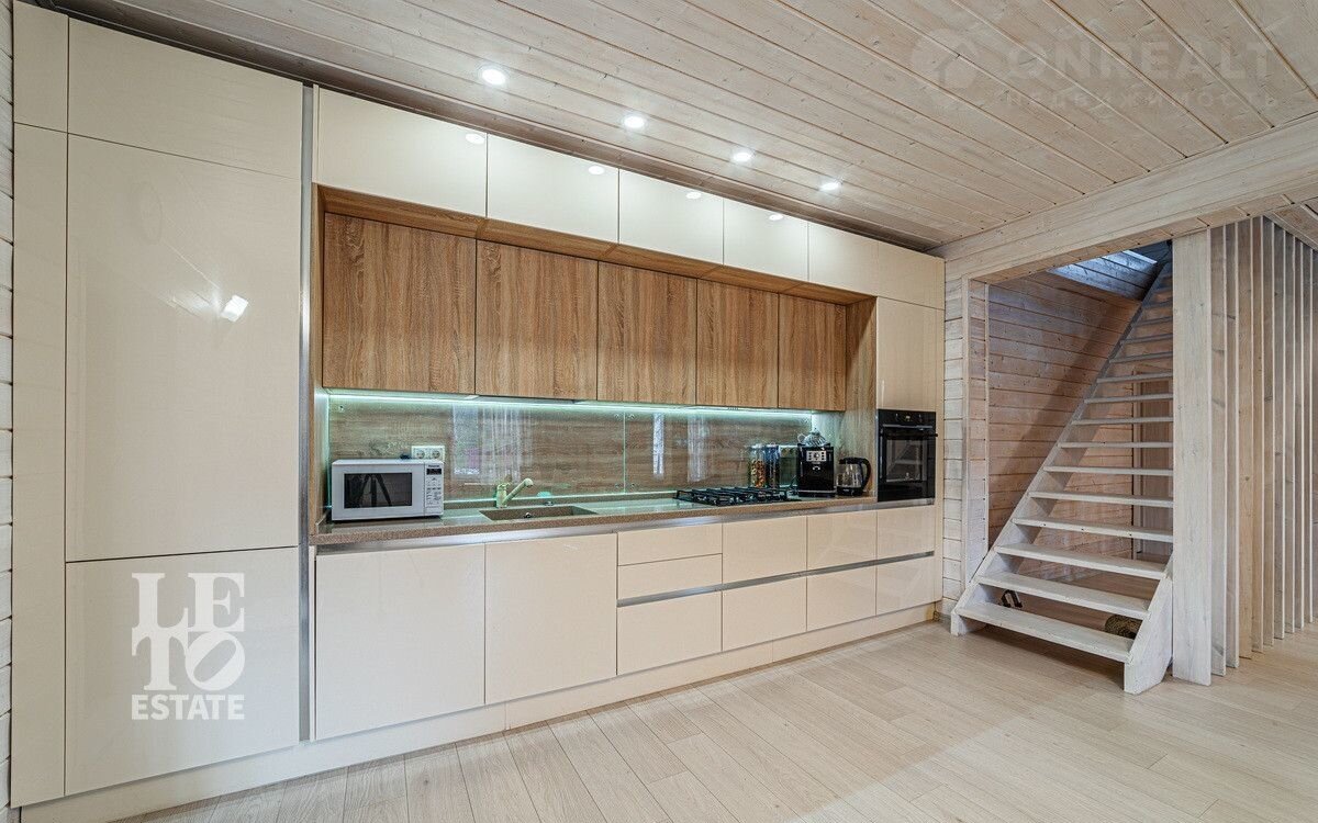 Внутри выполнена качественная отделка по индивидуальному проекту. Дом продается со всей необходимой мебелью и техникой. Встроенный кухонный гарнитур с бытовой техникой. В гостиной есть дровяной камин.