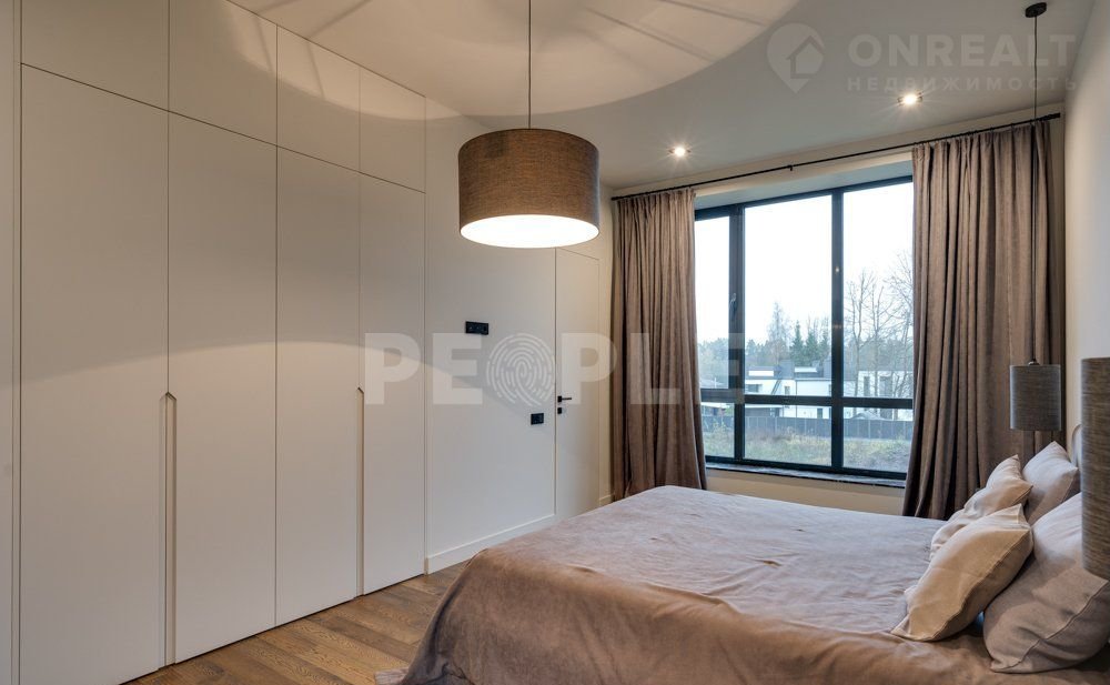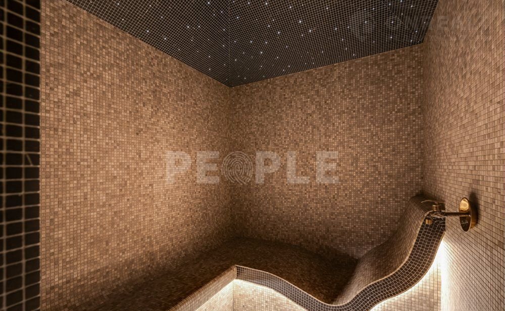 1-й этаж: холл, гардеробная при входе, гостевой санузел, хамам, отдельная кухня-столовая с кладовой, каминный зал-гостиная с четырехметровыми потолками, мастер-спальня с гардеробной и ванной, кабинет/спортзал. Дополнительный блок с отдельным входом включает кухню-гостиную, спальню и санузел, а также две крытые террасы с выходом к бассейну.