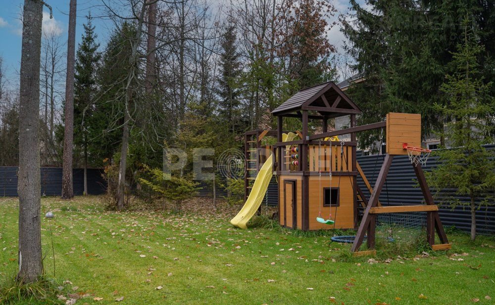 Участок украшен вековыми соснами и елями, создающими природную атмосферу, имеются дорожки, коммуникации и ухоженный ландшафт.