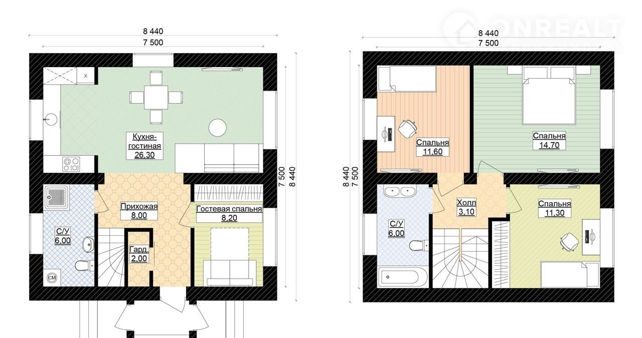 77м2, 1 этаж, 3 спальных комнаты/Большая гостиная + Кухонная зона. – 3 490 000р.