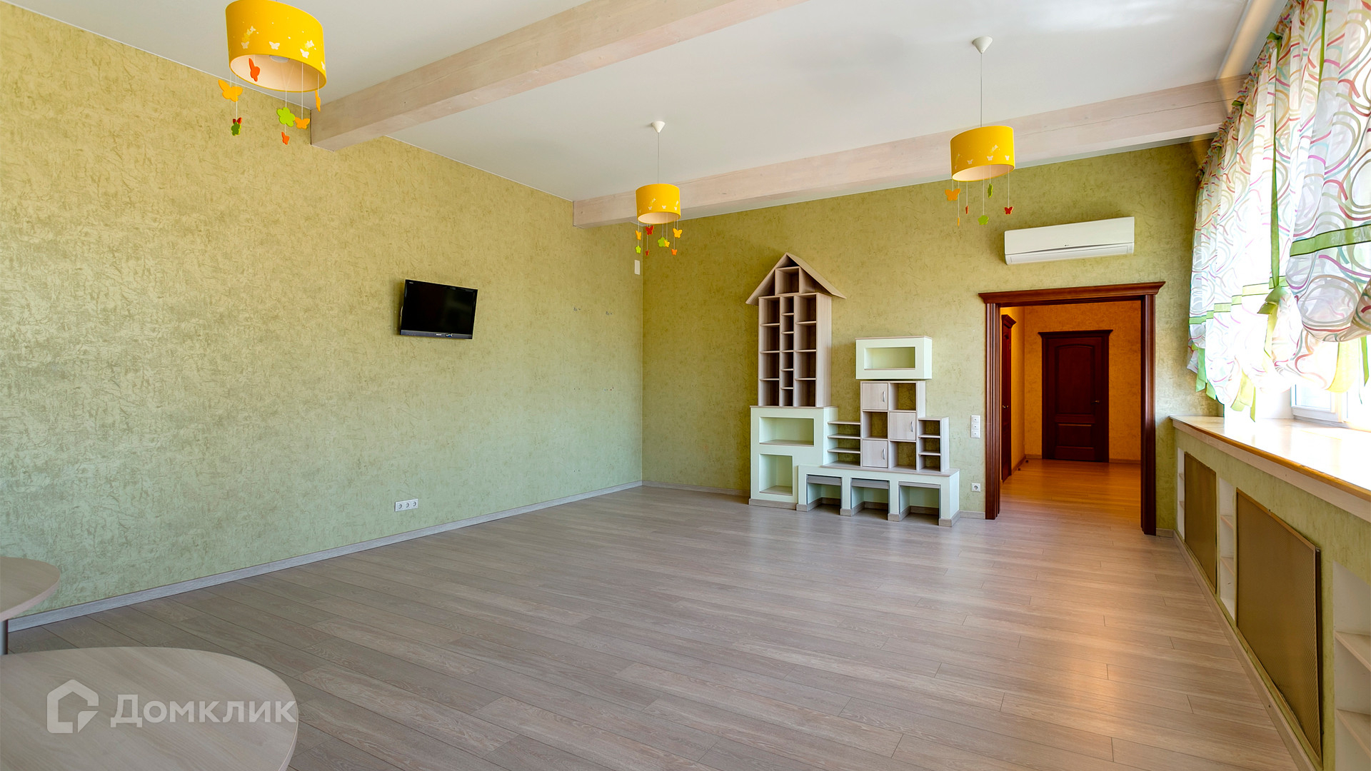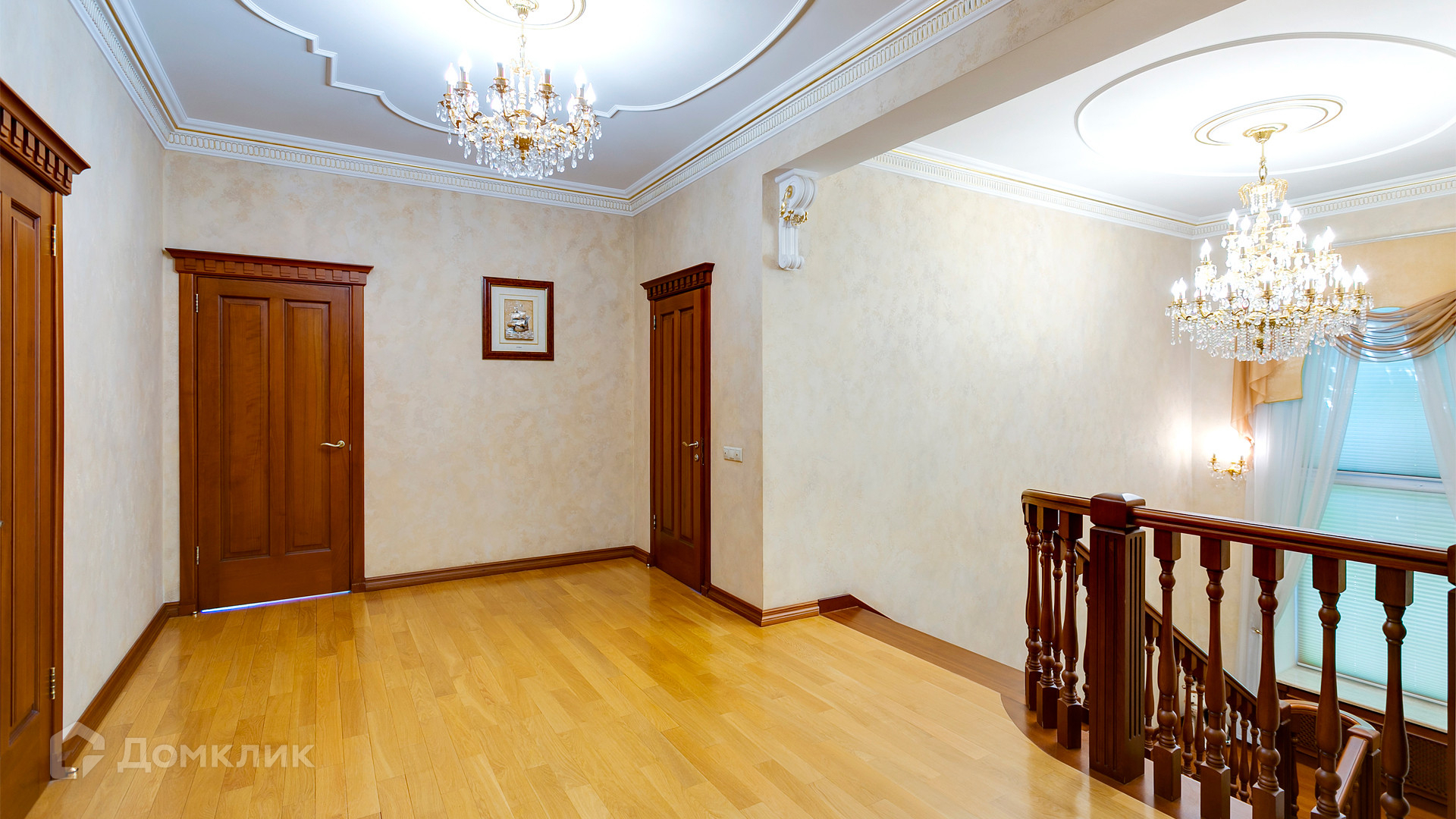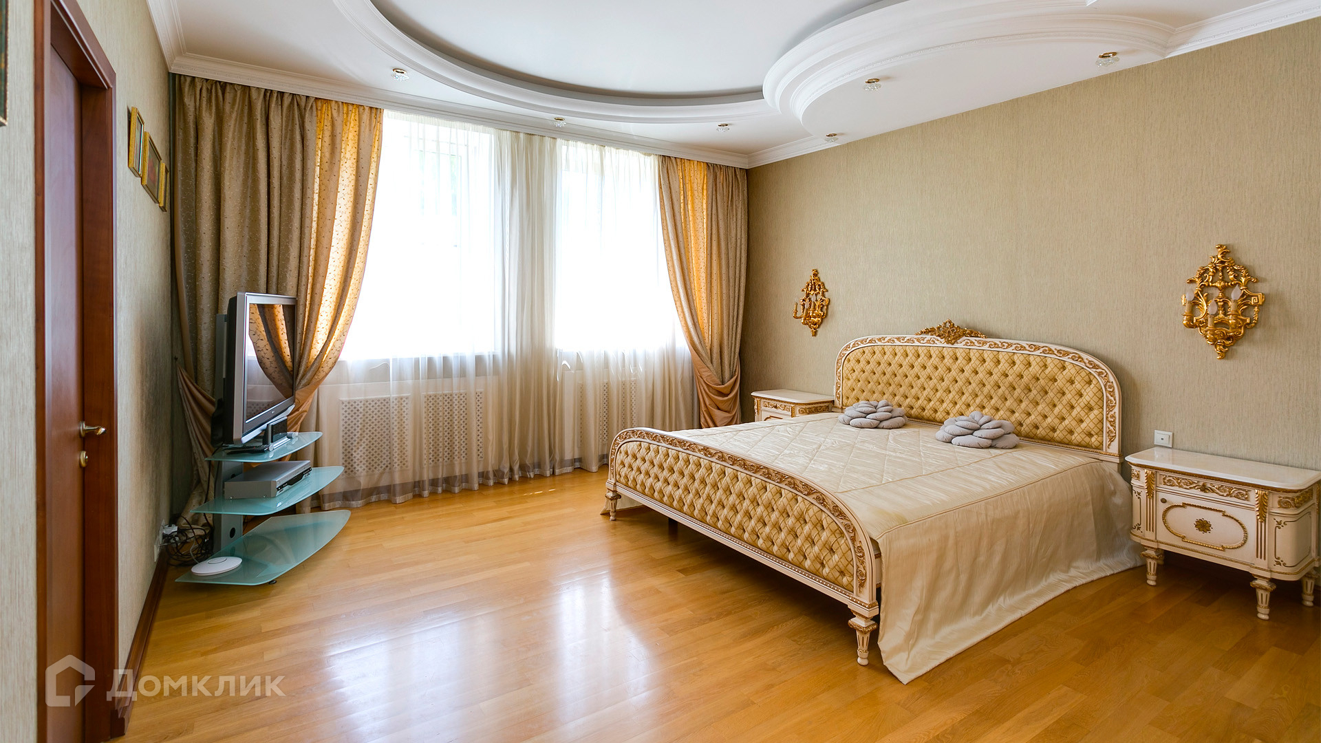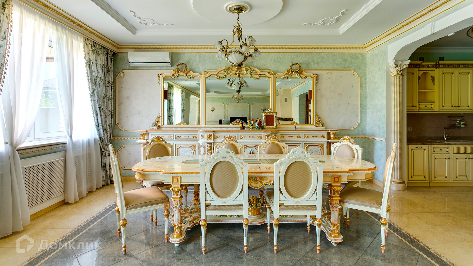 ID 10 375. Сколково. Коттедж площадью 674 м² расположен на полевом участке 16 соток с выходом к пруду. Фасад с большими окнами облицован желтым клинкерным кирпичом. Интерьер в классическом стиле оформлен в светлых оттенках, декорирован лепниной и колоннами с позолотой, зеркалами, витражами и деревом. Дом полностью меблирован, кухня оборудована бытовой техникой Miele. В резиденции спланировали 5 спален, каминный зал, кабинет, тренажерный зал, игровую, кинотеатр, бассейн и сауну. Предусмотрены гараж на 2 машины, блок для персонала, на территории — беседка, кладовая и навес на 2 машины. На участке выполнен ландшафтный дизайн, вымощены дорожки, оборудовано уличное освещение, высажены кустарники.