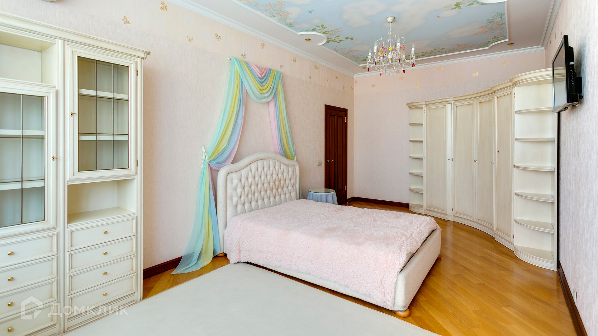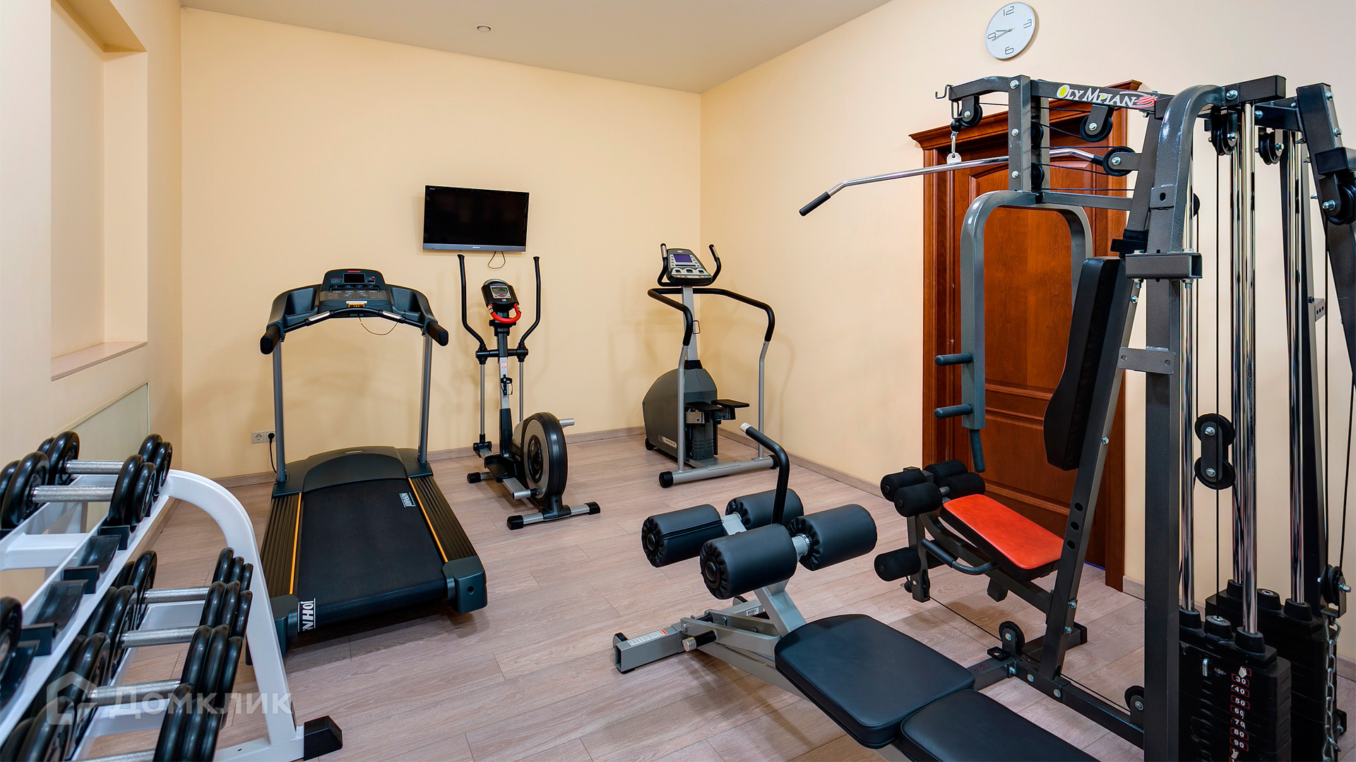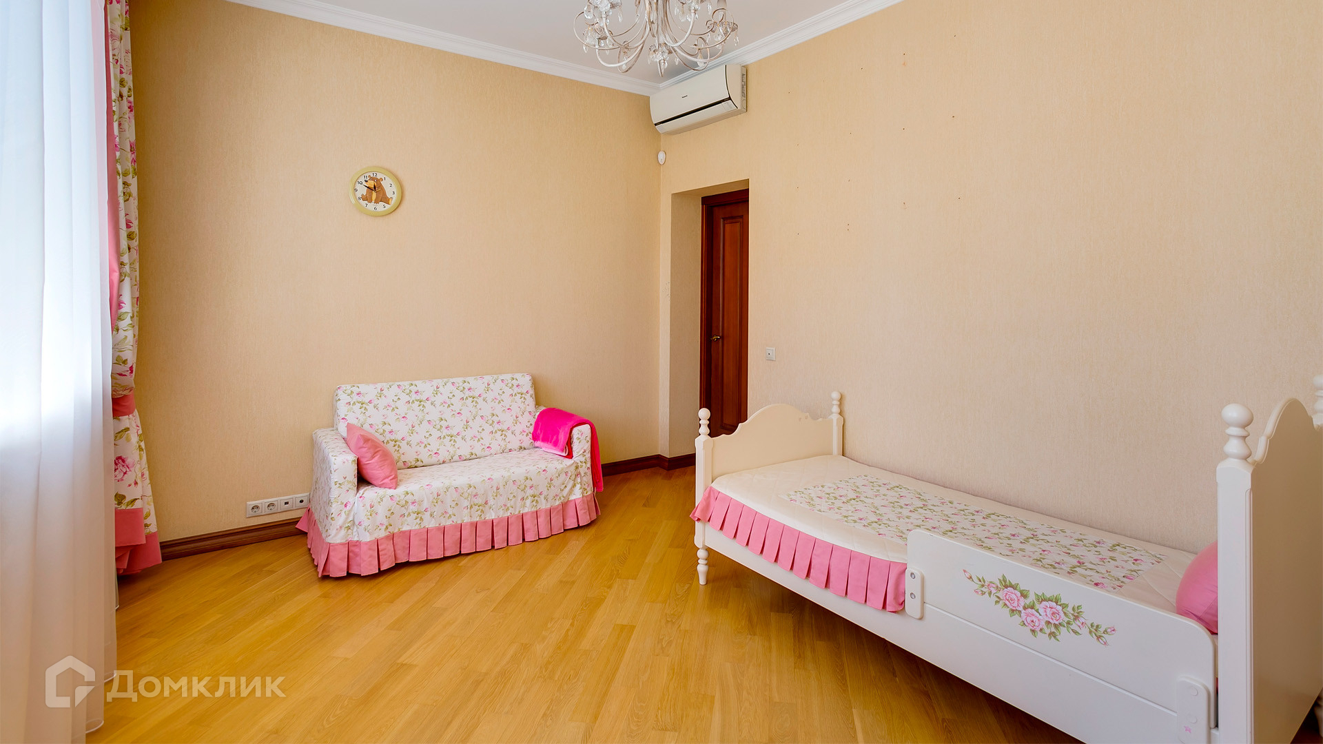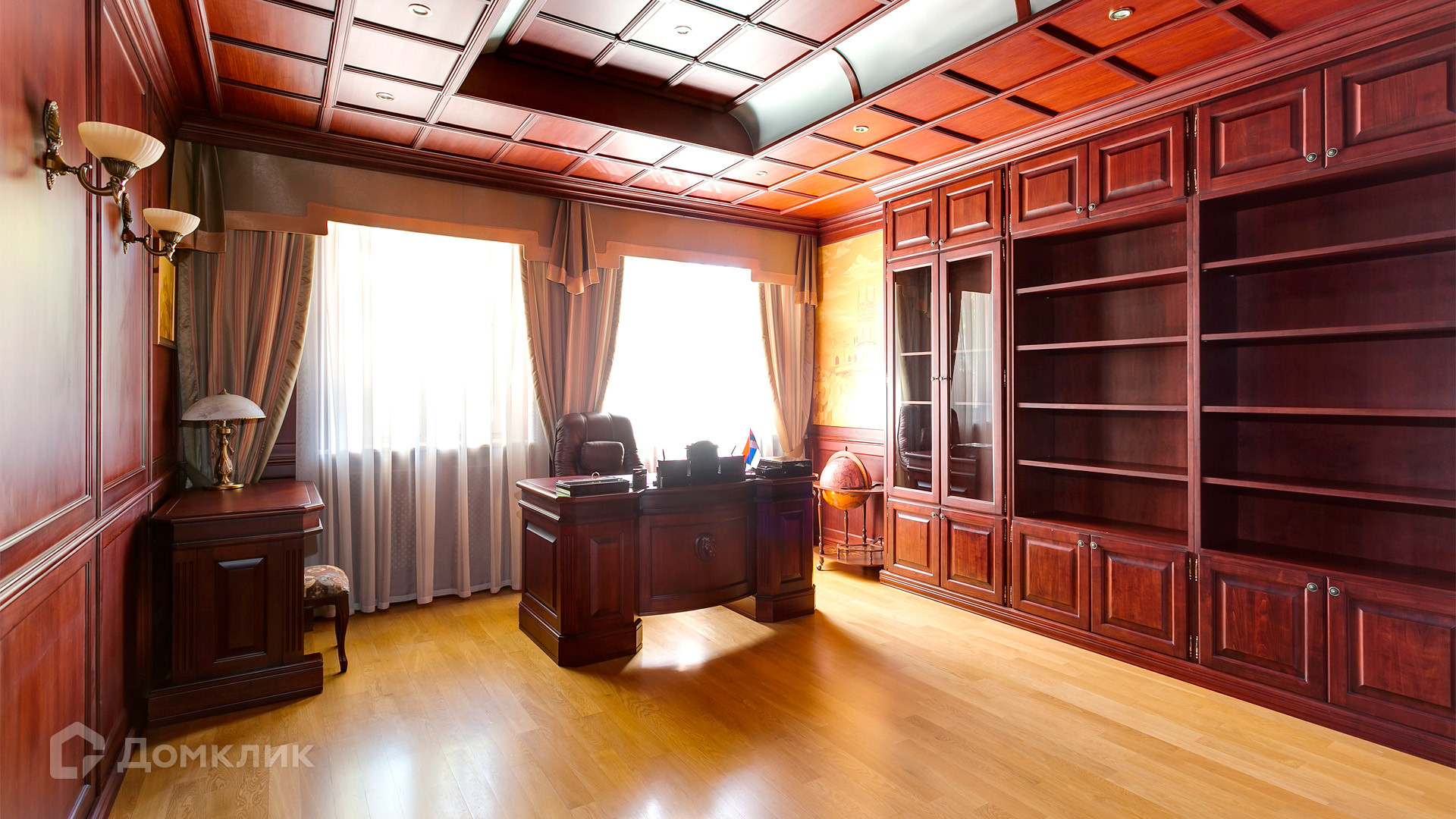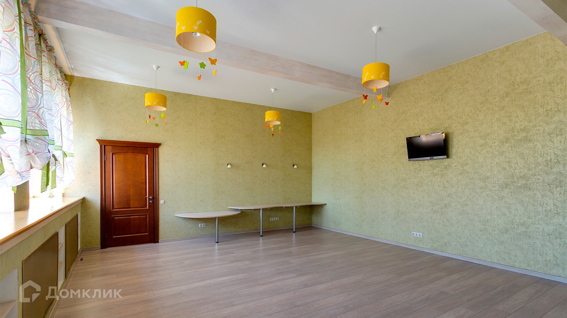 ID 10 375. Сколково. Коттедж площадью 674 м² расположен на полевом участке 16 соток с выходом к пруду. Фасад с большими окнами облицован желтым клинкерным кирпичом. Интерьер в классическом стиле оформлен в светлых оттенках, декорирован лепниной и колоннами с позолотой, зеркалами, витражами и деревом. Дом полностью меблирован, кухня оборудована бытовой техникой Miele. В резиденции спланировали 5 спален, каминный зал, кабинет, тренажерный зал, игровую, кинотеатр, бассейн и сауну. Предусмотрены гараж на 2 машины, блок для персонала, на территории — беседка, кладовая и навес на 2 машины. На участке выполнен ландшафтный дизайн, вымощены дорожки, оборудовано уличное освещение, высажены кустарники.